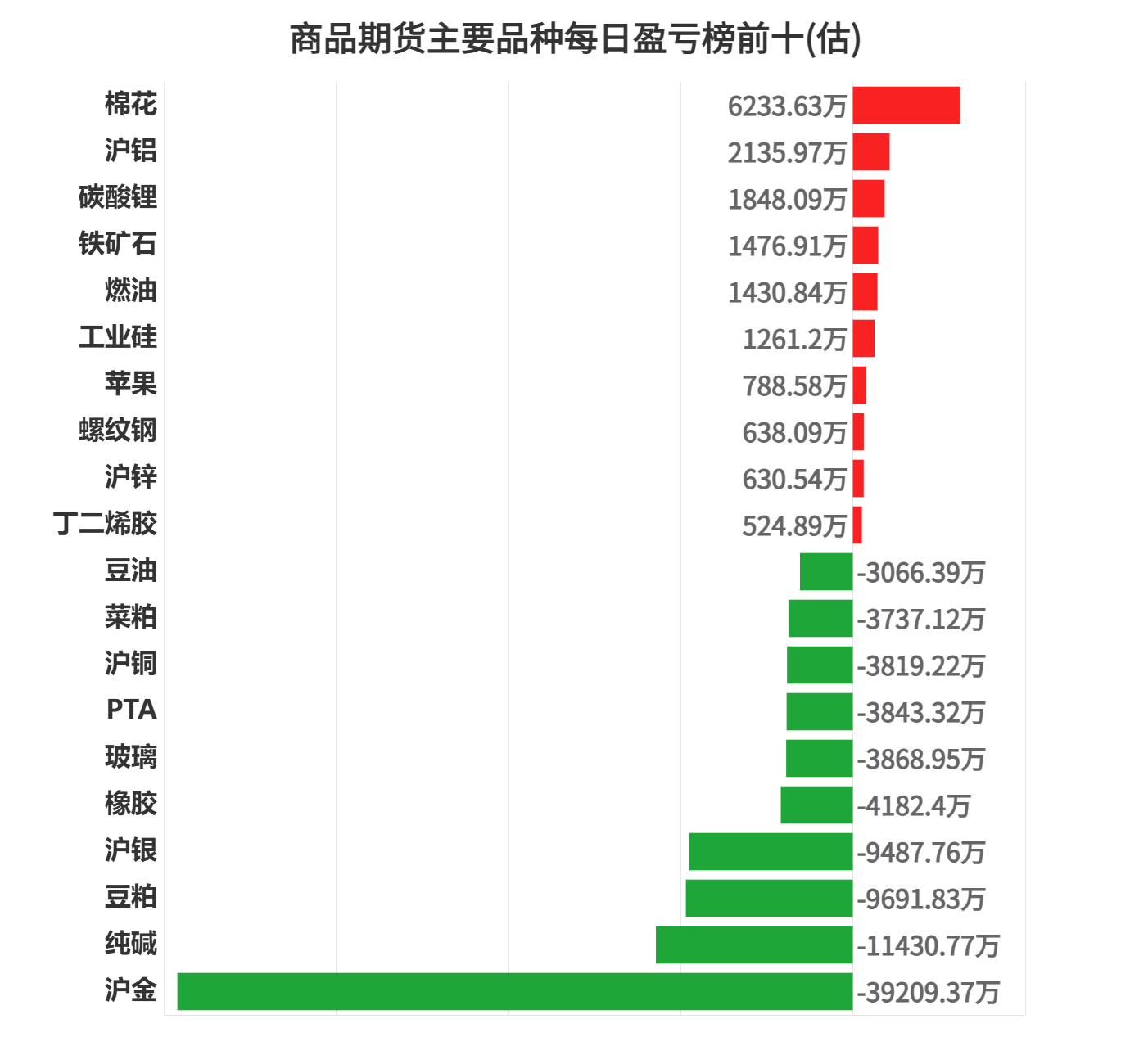 每日期货龙虎榜,带你深度了解市场。 市场一览:周五商品期货综合指数下跌0.37%,日内资金净流出37.63亿元。 市场成交量为2508.46万手,成交额为1.78万亿元。 持仓量为3581.17万手,较前一交易日减少25.45万手。 市场成交量前十和持仓量前十如下图所示: ![]() ![]() ![]() 品种盈亏榜:今日商品期货上榜机构席位中棉花盈利第一,为6233.63万元。 沪金亏损第一,为39209.37万元。 ![]() 注:盈亏数据为对应龙虎榜持仓的估算数据。 您可通过点击东方财富期货APP资讯页面“龙虎榜”及东方财富期货PC端左侧“龙虎榜”查看各类席位持仓及盈亏榜单信息。点此查看>> ![]() ![]() 本信息来源于东方财富Choice数据,相关数据仅供参考,若数据有误,以交易所发布数据为准,不构成投资建议。 (文章来源:东方财富研究中心) |