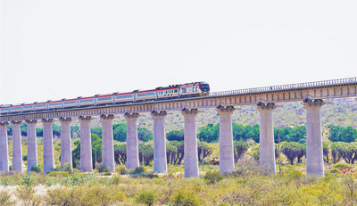 一列客运列车行驶在肯尼亚察沃国家公园附近的蒙内铁路察沃河特大桥上。 本报记者 黄炜鑫摄