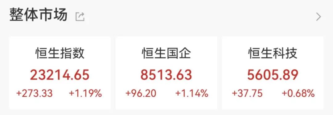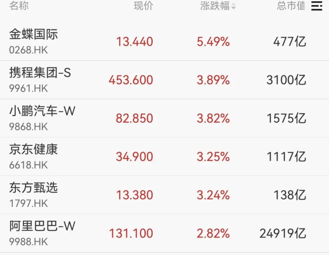 港股方面,恒生指数、国企指数均涨超1%,金蝶国际、携程集团、小鹏汽车等涨幅居前。