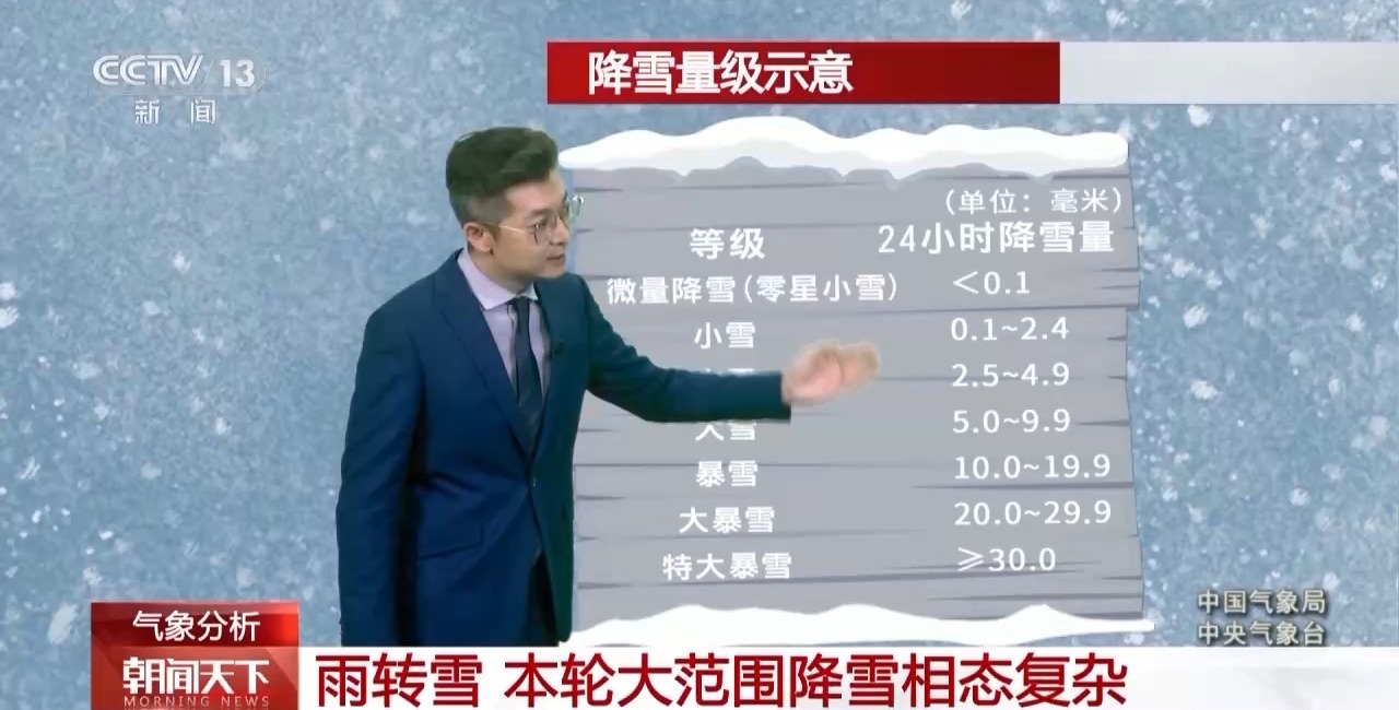 受寒潮影响,这两天,我国中东部出现大范围雨雪天气。昨天(3日),降雪区域向南扩展,山东南部、河南中南部、安徽西北部、湖北西北部等地部分地区有大雪,局地暴雪。 3月出现暴雪是否罕见?多大的雪才算暴雪?戳视频↓↓↓来看中国气象局气象分析师胡啸的解读。 中国气象局气象分析师 胡啸:3月出现强降雪不足为奇,但是在3月初山东、河南等地出现大范围暴雪,甚至大暴雪,则相对较少见。这次大范围雨雪先以降雨形式开端,伴随气温下降,陆续转雪。从天气形势来看,北风很强,南部水汽输送也不弱,因此强强对抗,出现大范围降雪天气。