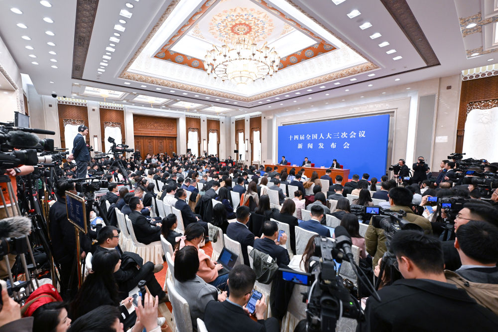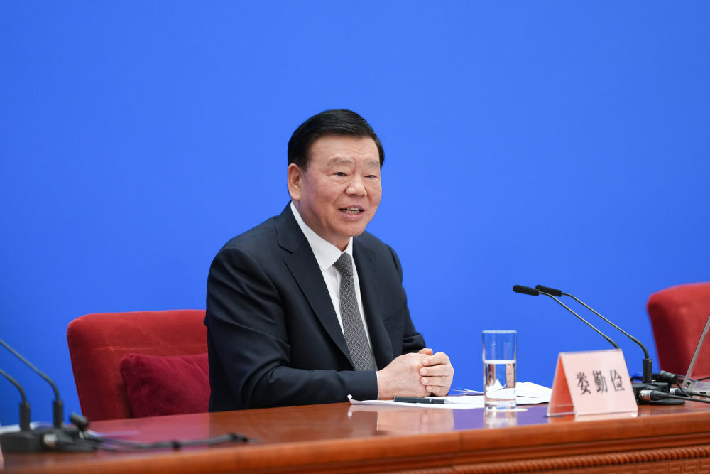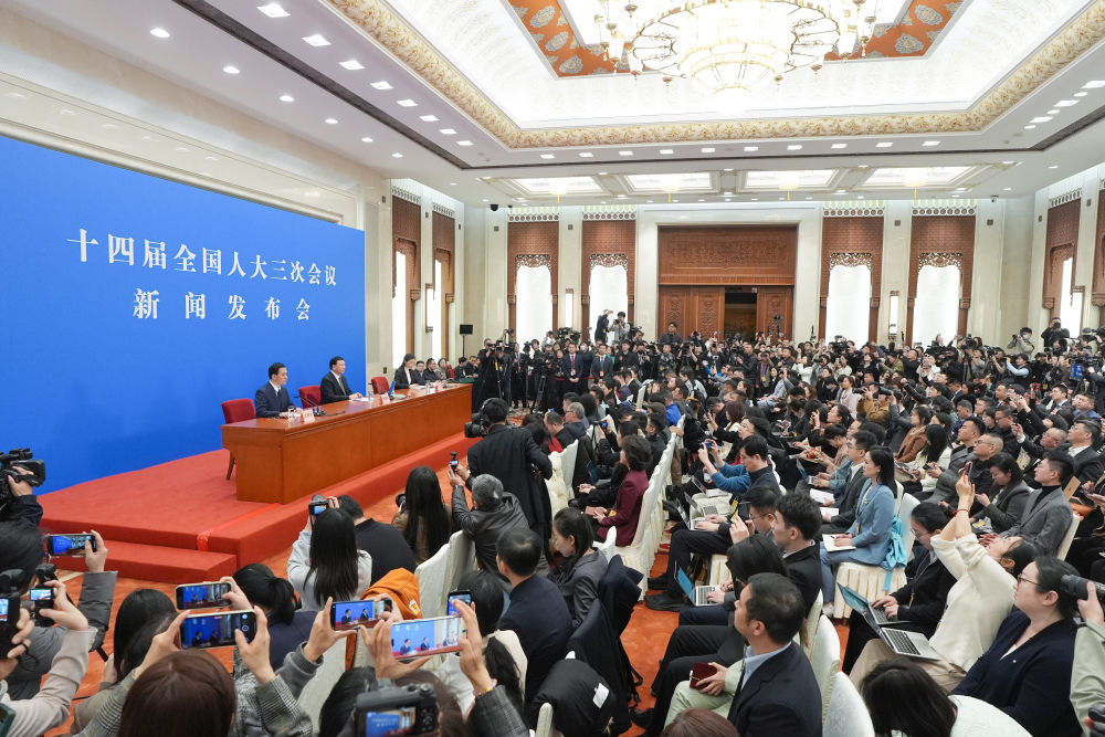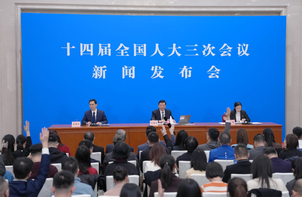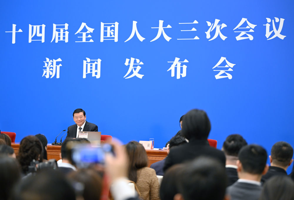 3月4日,十四届全国人大三次会议在北京人民大会堂举行新闻发布会。大会发言人娄勤俭就大会议程和人大工作相关问题回答中外记者提问。