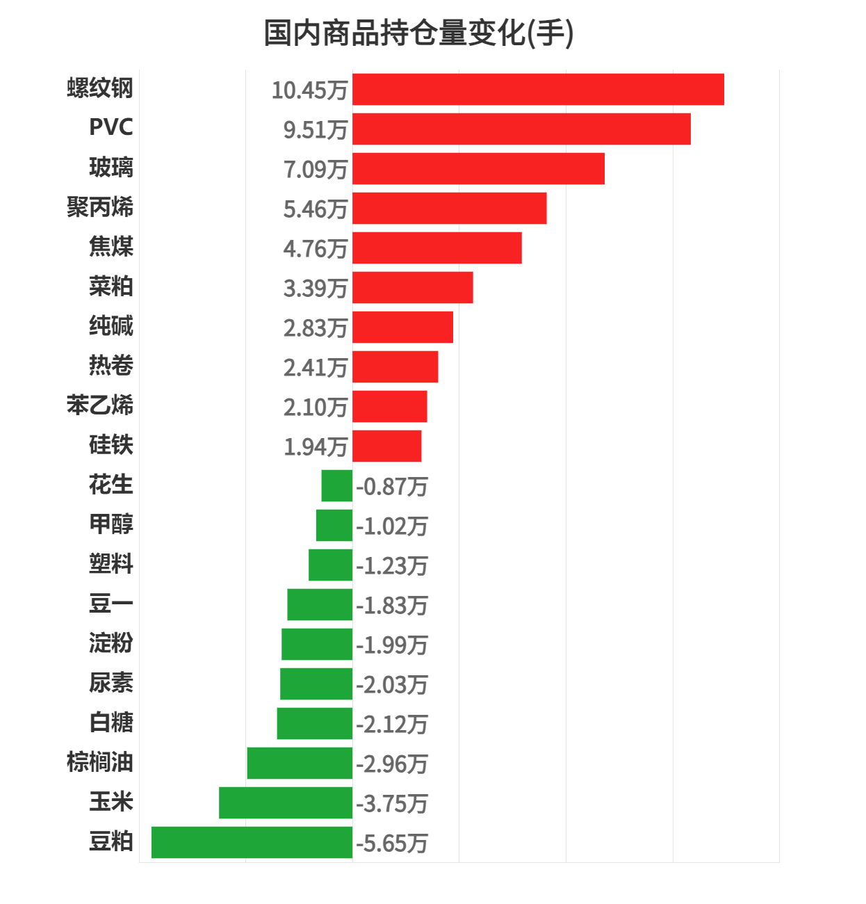 每日期货龙虎榜,带你深度了解市场。 市场一览:周三商品期货综合指数下跌0.31%,日内资金净流入26.87亿元。 市场成交量为3052.00万手,成交额为1.94万亿元。 持仓量为3719.63万手,较前一交易日增加45.78万手。 市场成交量前十和持仓量前十如下图所示: