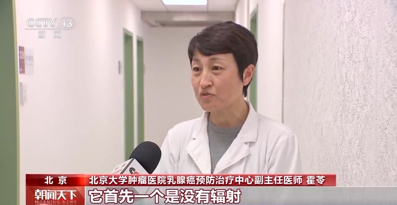 北京大学肿瘤医院乳腺癌预防治疗中心副主任医师霍苓:(超声检查)首先是没有辐射,然后安全性好,所以不同年龄阶段的女性,年轻女性孕妇,还有需要频繁检查的女性都是可以经常做的。钼靶是一个X线检查,它是有辐射的,做的时候会把病人的乳房整个夹成一个片状,所以病人的耐受程度也会差一点。 虽然超声没有辐射,但对于微小钙化,钼靶检查的敏感性更高。