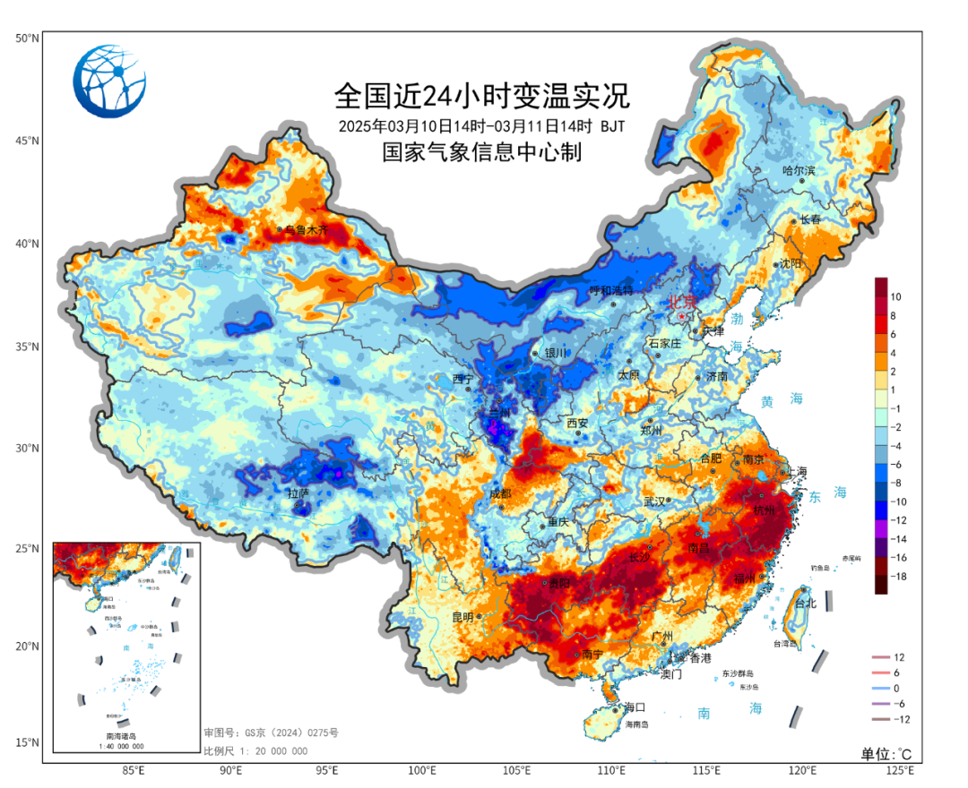 13日至15日,还将有新一股冷空气东移南下,在两股冷空气接连影响下,一直到周末,我国大部地区气温将波动下滑,多地最高气温累计降幅可达10℃以上。