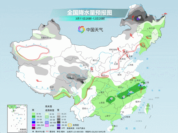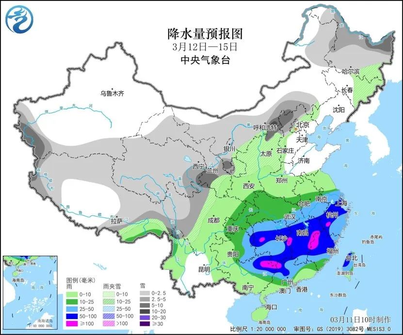 之后,新一股冷空气南下和暖湿气流交汇,13日至15日西北地区东部、华北等地降雪也将会发展增多,大家继续留意临近预报。 4暴雨 本周,南支槽波动频繁,加上冷空气南下,南方大部将维持多阴雨的天气格局,部分地区降雨较强,还将出现大到暴雨。 预计3月12日至15日,南方地区将有一次较强降雨过程,湖南中南部、江西中部、浙江西南部、福建西部、广西东北部、广东西北部的部分地区有大到暴雨、局地大暴雨,降雨主要出现在12日夜间至14日夜间。