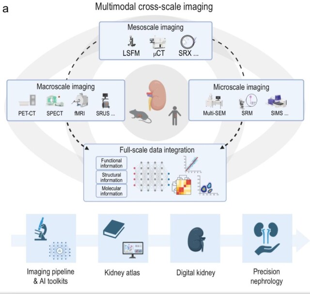 图为“肾脏成像组计划”项目路线图。(受访者供图) 为攻克此难题,北京大学国家生物医学成像科学中心与北京大学第一医院共同发起“肾脏成像组计划”,以期突破传统病理检测局限,以“数字肾脏”为精准诊疗建立多维度评估体系。 项目负责人、北京大学第一医院副院长杨莉说,“数字肾脏”的特点是动态仿真且多维可视,“通过多种技术手段,可让肾脏从分子细胞水平到整个器官运行都直观可见,并整合多模态成像,绘出真实肾脏的内部结构和动态演化过程。” 杨莉介绍,在临床上,“数字肾脏”平台也可帮助精准定位病灶根源,并结合患者临床数据构建个性化数字模型,为患者筛选最优治疗方案,从而提升肾脏疾病早期诊断能力和个性化诊疗水平。 根据计划,科研团队将在3年内先构建动物的“数字肾脏”,10年内实现人类“数字肾脏”,并在临床肾脏病诊疗过程中应用。目前,联合团队已绘制完成超声、核磁共振、CT和病理等模态下的成像数据图,并对各模态成像数据进行整合。 “肾脏成像组计划”近日发表于学术期刊《国家科学评论》。北京大学国家生物医学成像科学中心主任、中国科学院院士程和平认为,该计划作为国家成像中心首批重大项目之一,不仅为肾脏病研究开辟了新路径,还将为其他器官的数字建模提供重要参考。 责编:洪晓懿 一审:洪晓懿 二审:蒋俊 三审:鲁红 来源:新华网 |