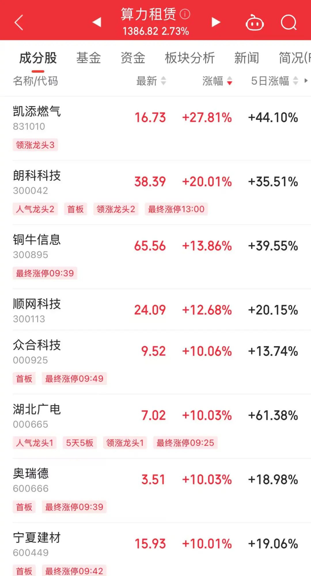 算力概念股逆市爆发,朗科科技、奥瑞德、电光科技、利通电子等多股涨停,部分高位股尾盘大幅回落。