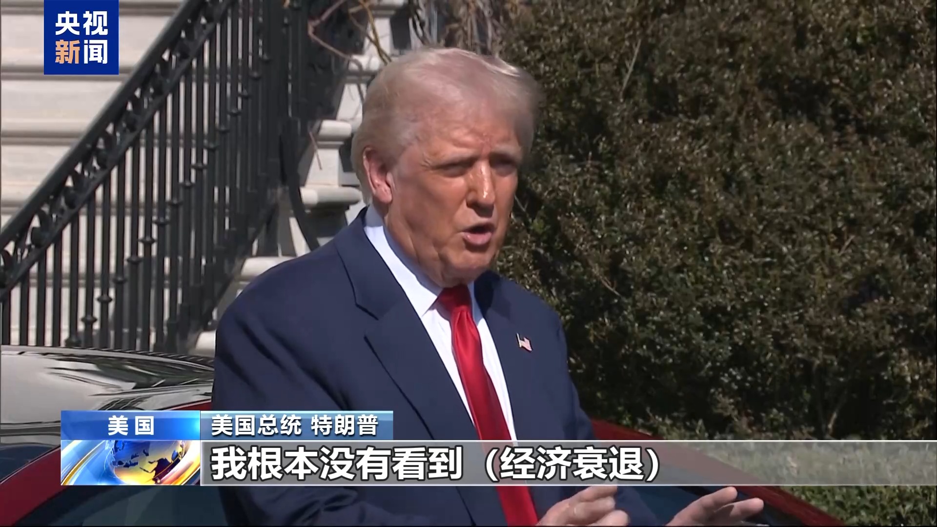 美国媒体认为,美股下跌是因为投资者担心美国关税政策引发美国经济衰退,但美国总统特朗普表示,“根本”没有看到经济衰退。 记者:你认为经济衰退即将出现吗?