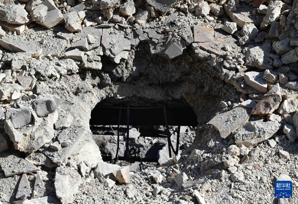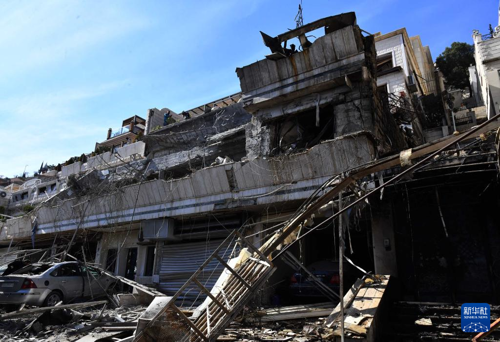 这是3月13日在叙利亚首都大马士革拍摄的空袭现场。新华社发(阿马尔·萨法尔贾拉尼摄) 另据叙利亚国家通讯社13日报道,以军当天空袭了位于大马士革西郊的一栋居民楼,造成楼房严重受损。