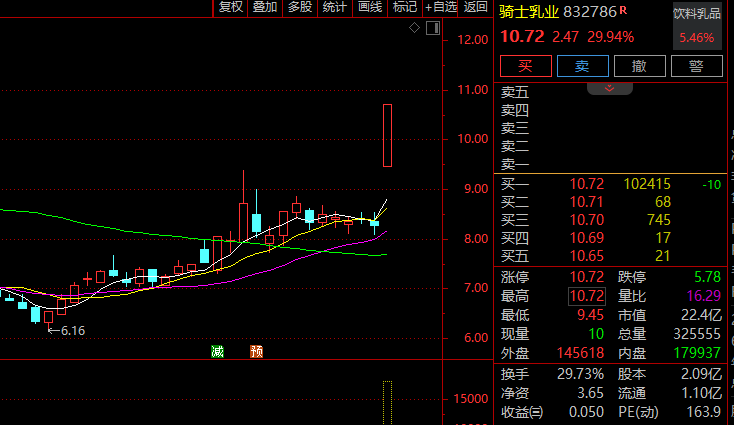 金价近期持续走高,再次创新高。3月14日早间,COMEX黄金一度突破3000美元/盎司关口,创下历史新高,日内大涨逾50美元;伦敦金现报2987.8美元/盎司,SHFE黄金也创新高,报695.9元/克。 消息面上,黄金避险情绪再度升温。美国日前公布的数据显示,美国2月PPI环比持平,为去年7月以来最小环比变化,同比上升3.2%,均低于市场预期;剔除食品和能源的核心PPI环比下降0.1%,同比上升3.4%,也都低于市场预期。然而,这份报告未能改变市场基调。相比之下,周三公布的CPI报告一度提振了投资者信心,市场降息预期再起,此外贸易紧张局势升级也引发了避险买盘。 另外,14日,小金属概念股涨幅居前,东方钽业、锡业股份、宝钛股份、翔鹭钨业涨停。 市场分析指出,今年以来,小金属市场迎来显著上涨行情,锑、铋、钴等品种价格涨幅尤为突出,其中锑价近日连创历史新高。在供需偏紧的情况下,锑价、钴价中枢仍有望进一步上移,小金属价格弹性可期,战略小金属有望迎来价值重估。 乳业股持续走强 饮料乳品概念股盘初拉升,骑士乳业开盘后仅2分钟就30%涨停,新乳业10%涨停,皇氏集团、西部牧业、熊猫乳品、麦趣尔等纷纷走强。