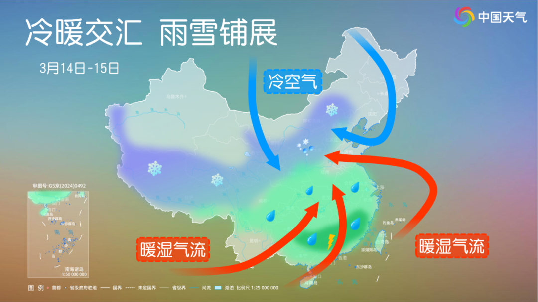 冷空气来刷存在感,暖湿气流也不甘示弱,两者携手给我国多地带来一场天气大“变奏”!北方多地或迎来“三月雪”,南方部分地区降雨更为“激烈”,还可能伴随雷暴大风、冰雹等强对流天气。