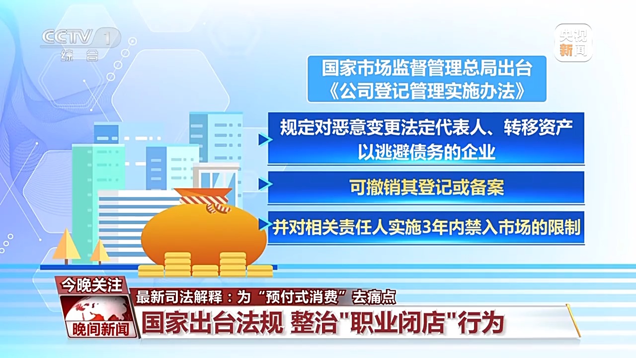 司法解释规定:如果经营者未与消费者订立书面预付式消费合同,对合同内容有两种以上解释的,争议发生时,应作对消费者有利的解释。此外,司法解释还规定了经营者提供证据的责任。 最高人民法院民一庭副庭长 吴景丽:比如说消费者在健身房办了一张年卡,他只消费了一半还剩下余额,但是健身房却拒绝向其退款。此时消费者诉讼到法院之后,健身房掌握着这些证据,但是健身房拒不向法院提供,此时,法院就要做出不利于对经营者的解释,来支持消费者的诉求。 事实上,为应对预付式消费中频频发生的问题,全国各地已采取多项监管措施,从立法、资金监管、信用约束等多方面构建治理体系,一起来看看各地的探索。 国家出台法规 整治“职业闭店”行为