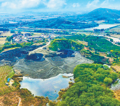 正在用太湖淤泥填埋的宜兴矿坑区域。