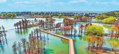 用太湖淤泥填埋修复后的湿地公园。 以上图片均为姚春摄(人民视觉) 核心阅读 底泥清淤,是太湖治理的关键。自新一轮太湖清淤工程启动以来,大量底泥被用来重塑生态湿地、回填矿坑,助力生态修复,在改良耕地、用作路基等方面也有不小的应用前景。大体量、低成本持续消纳太湖淤泥,越来越多资源化利用手段正在探索落地。 春至太湖畔。湖面,往来船只络绎不绝,成群的红嘴鸥在盘旋。 在太湖梅梁湖区深处,生态清淤智能化一体船“太湖之星”静静伫立,水下螺旋绞刀高速飞转,湖底淤泥被抽送上来。连日来,“太湖之星”施工不停,助力守护一湖碧波。 底泥清淤,是太湖治理的关键。2024年3月,新一轮太湖清淤工程启动,“太湖之星”将在60个月内完成近29平方公里湖区内约834万立方米底泥清淤,相当于将整个梅梁湖水域的淤泥层整体削除5厘米,挖出的淤泥足以填满4000多个国际标准泳池。 大量底泥从太湖而来,又将往何处去?近日,记者进行了探访。 整形上岸—— 经除杂、固化,淤泥成为“细净优”的泥饼 在梅梁湖离岸约4公里的水面上,通体青绿、拖着长尾的“太湖之星”加紧作业。这是一个由3艘作业船串联一体的水上平台,如同一座漂浮在湖面上的“移动工厂”。 底泥“重生”第一步:上岸。 从太湖北岸的码头登船,航行约20分钟,便登上了“太湖之星1号”平台。不远处,机声隆隆,环保清淤船“太湖浚清1号”马力全开,其上附载的新型环保绞刀正挖掘抽吸湖底淤泥。 “疏浚浓度是衡量绞吸船效率的重要指标。”中交天航局太湖项目总工程师房岩介绍,通过自主研发的环保绞刀和自动变频系统,“太湖之星”的疏浚浓度可达到50%以上,整体效率是普通绞吸船的3倍。这意味着,每抽出1立方米泥浆,含泥量能占到一半以上,每日可稳定清淤5000立方米。 挖得快,还要“清得净”。 “抽吸出的淤泥混杂着砂石、贝壳等杂物,倘若不进行处理,很难实现再利用。”房岩解释,以往,湖泊清淤需要开设脱水处理厂,将底泥运输到陆地上进行脱水和无害化处理,不仅要长期占用大量土地,还可能对周边生态环境造成影响。而“太湖之星”通过三船联动,可以将陆地作业转为水上作业,减少占用至少300亩淤泥固化场地。 只见通过一条500多米长的输泥管道,从清淤船抽吸而来的泥浆,被源源不断输送到除杂调絮船“太湖之星1号”上进行无害化和净化处理。 先做“减法”,为淤泥“瘦身”。借助双重筛网和多个筛滤机,太湖淤泥中的贝壳、石块等杂质被分离,让杂乱的淤泥变成细腻的泥浆。 再做“加法”,替泥浆“上妆”。针对太湖底泥特性,“太湖之星1号”配备了多种脱水化学助剂,将泥和水有效分离,从而有效排除各类杂质。 之后,底泥依次流转到“太湖之星2号”,在16台高效板框压滤机作用下,如同农家压豆油般,被压制成一块块方形泥饼,再经由皮带机送至泥驳船运往陆地。 “经过除杂、固化,淤泥成为‘细净优’的泥饼,为后续资源化利用做好准备。”中交天航局太湖项目经理李大伟说。 变为资源—— 泥饼可抛填湖底重塑生态湿地,可回填矿坑助力荒山复绿 新一轮太湖清淤工程启动以来,已有超150万立方米的太湖淤泥,经过“太湖之星”的“整形术”,踏上不同的“重生路”。 第一条路——抛填湖底,重塑生态湿地。 太湖梅梁湖区东岸,香蒲、睡莲等植物竞相生长,鸟群畅游湖面,一座长约1.75公里、宽约100米的亲水湿地公园初见雏形。 “几年前,这里还是另一番景象。”无锡湿地生态科普馆馆长陆亚琪说,“那时,鱼塘蓝藻交错,水体浑浊黑臭,让人难以靠近。” 荒滩变美景,太湖泥饼是一大“功臣”。“固化泥饼无需改良处理,直接回填、压实、整平后,便能种植芦苇、香蒲等挺水植物及轮叶黑藻、金鱼藻等沉水植物。”李大伟介绍,去年3月底至6月,约20万立方米泥饼被驳船送至梅梁湖东岸抛填,成为湖底地形重塑的土源。 如今,在建设者的精雕细琢下,各类植物茁壮生长,生态廊道、园林景观等亲水设施相继建成,湖滨湿地带正逐渐恢复。 “利用湖底清淤的固化泥饼进行湖滨湿地带建设,既解决了部分淤泥出路问题,又能有效促进水生态修复,走出一条让太湖淤泥变废为宝、有效利用的好路子。”无锡市水利局副局长兰秀凯表示。 另一条路——回填矿坑,助力荒山复绿。 江苏宜兴,登高远眺,一艘艘满载太湖泥饼的500吨泥驳船从无锡梅梁湖区出发,经古竹运河、竺山湖逆流而上,停靠在20公里外的宜兴市万石镇临时码头。数十辆货车已在岸边整齐排列,等待着接收“新鲜出炉”的泥饼,将其转运至宜兴市蒋山废弃矿坑。 上世纪八九十年代,大量开采给蒋山留下了大大小小的矿坑和废弃的矿山。如今,随着太湖清淤工程的开展,运输距离近、天然肥力好的太湖淤泥成了矿坑修复的优选。 “这片区域的废弃矿坑可容纳约120万立方米淤泥,淤泥填埋能有效助力变废为宝、荒山复绿、沟壑平整。”房岩介绍,未来,通过对太湖底泥进行干化、增肥等改良,可获得低成本的优质矿山修复基质,形成可供苗木、农作物生长的高肥力土壤修复区,为下一阶段的矿坑复绿打下基础。 更多用途—— 变耕地、做路基……底泥将在更多场景中发挥作用 河湖治理从来不是一劳永逸的,总体看,太湖湖体营养过剩状况尚未得到根本扭转,底泥清淤是一项需要长期开展的工作。 疏浚出来的淤泥,如何实