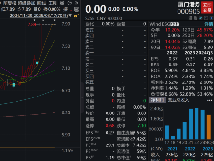 昨日晚间,30家上市公司相继披露2024年年报。 这家港口企业今日复牌! 3月17日晚间,厦门港务披露重大资产重组预案。厦门港务拟通过发行股份及支付现金的方式向国际港务购买其持有的集装箱码头集团70%股权,并向不超过35名符合条件的特定对象发行股份募集配套资金。 经交易相关方协商,本次发行股份及支付现金购买资产的每股发行价格为6.69元,具体股份和现金支付比例将在标的资产最终交易作价确定后,由各方协商确定。