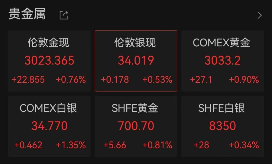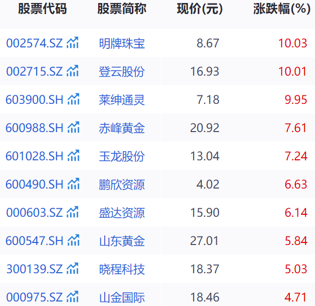 3月18日,现货黄金日内连续上破3010美元/盎司和3020美元/盎司两道关口,再创历史新高,今年已累计涨超15%。 截至晚上19时左右,伦敦金现站上3020美元/盎司,COMEX黄金站上3030美元/盎司,SHFE黄金同步冲高,价格冲破700元/克。 ![]() 3月18日下午,上金所发布关于做好近期市场风险控制工作的通知称,近期贵金属价格持续大幅波动,市场风险加剧。请各会员单位做好风险应急预案,维护市场平稳运行,提示投资者做好风险防范工作,合理控制仓位,理性投资。 受此影响,今日A股黄金概念异动拉升,板块内多只个股直线涨停。 截至收盘,明牌珠宝(002574.SZ)斩获6连板,登云股份(002715.SZ)、莱绅通灵(603900.SH)亦涨停,赤峰黄金(600988.SH)涨近8%,山东黄金(600547.SH)涨近6%。 ![]() 对此,南财快讯记者以投资者身份致电明牌珠宝、登云股份,前者为黄金饰品厂商,后者涉及黄金上游采矿。