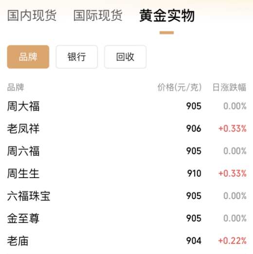 明牌珠宝相关人士回应,公司已对黄金相关业务进行套期保值,金价上涨对公司整体影响不大。同时,采购、销售等业务也会跟随金价等因素实时变动。 登云股份接线人员表示,公司不清楚今天股价涨停的原因,这不一定和金价有关。不过,金价持续上涨,肯定会对公司产生积极影响。 3月18日盘后,明牌珠宝发布异动公告称,经核实,公司近期经营情况正常,内外部经营环境未发生重大变化,公司、控股股东及其一致行动人和实控人不存在应披露而未披露的重大事项。 此外,今日多家黄金珠宝商黄金报价突破910元/克大关。 3月18日,周生生足金饰品报价为910元/克,950铂金饰品报价为412元/克;周大生饰品黄金报价为905元/克,金条报价为905元/克。 周大福足金饰品报价905元/克,投资类黄金报价793元/克,黄金增值服务价格为790元/克,黄金回收服务价格为675元/克。 ![]() 关于后市,瑞银研报预计,2025年黄金高点将突破3200美元/盎司。理由是市场避险情绪持续、宏观经济不确定性、美国财政赤字恶化与国际地缘政治风险,都将继续支撑黄金价格上行。 西部证券表示,在贸易紧张局势加剧和市场对美联储降息预期升温的推动下,黄金作为避险资产的吸引力进一步增强,继续看好黄金长牛。 (文章来源:21财经) |