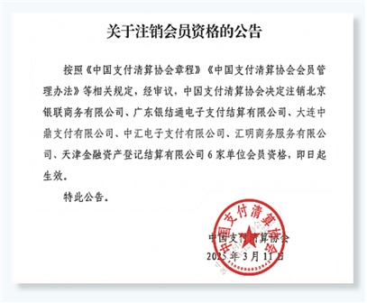 证券时报记者 石晏 近日,中国支付清算协会(PCAC)再次发布《关于注销会员资格的公告》,共有6家单位会员资格被取消。 今年以来,在非银行支付机构监管不断强化的趋势下,中国人民银行的各地分支机构也频频开出了高额罚单。 年内再发“退群”帖 中国支付清算协会发布的公告显示,按照《中国支付清算协会章程》《中国支付清算协会会员管理办法》等相关规定,经审议,中国支付清算协会决定注销北京银联商务有限公司、广东银结通电子支付结算有限公司、大连中鼎支付有限公司、中汇电子支付有限公司、汇明商务服务有限公司、天津金融资产登记结算有限公司6家单位会员资格,即日起生效。 目前,北京银联商务、广东银结通支付、大连中鼎支付、中汇电子支付、汇明商务等均已注销支付牌照。 实际上,这并不是中国支付清算协会今年首次发布“退群”公告。 1月中旬,中国支付清算协会公告称,按照《中国支付清算协会章程》《中国支付清算协会会员管理办法》等相关规定,经审议,中国支付清算协会决定注销北京数字王府井科技有限公司单位会员资格,即日起生效。 会员含单位和个人 根据官网信息,中国支付清算协会成立于2011年5月23日,是经国务院同意、民政部批准成立,并在民政部登记注册的全国性非营利社会团体法人,是中国支付清算服务行业自律组织。协会业务主管单位为中国人民银行。会址设在北京。 从组成上来看,会员包括单位会员和个人会员。凡经金融监管部门批准设立的、具有独立法人资格的银行、财务公司等相关金融机构,经中国人民银行等相关监管部门批准设立的支付清算机构,取得中国人民银行颁发的《支付业务许可证》的非银行支付机构,与支付清算业务相关的生产服务与技术支持机构,支付清算行业的从业人员或相关领域的专家学者,在民政部门登记的各省(自治区、直辖市)支付清算类协会,经相关监管机构批准设立的境外支付清算机构在华代表处及相关机构,均可申请加入本会。 中国支付清算协会以促进会员单位实现共同利益为宗旨,遵守国家宪法、法律法规和经济金融方针政策,遵守社会道德风尚,对支付清算服务行业进行自律管理,维护支付清算服务市场的竞争秩序和会员的合法权益,防范支付清算风险,促进支付清算行业高质量发展。 严监管态势不改 在非银行支付机构监管不断强化的趋势下,中国人民银行的各地分支机构近期频频开出了高额罚单。 今年3月,中国人民银行深圳市分行公开的行政处罚信息显示,广东盛迪嘉电子商务股份有限公司(简称“盛迪嘉支付”)因存在“违反商户管理规定”等5项违法行为,遭罚737万元。同时,时任盛迪嘉支付总经理曾某洪被给予警告,并处罚款23.5万元。 具体来看,盛迪嘉支付存在“违反商户管理规定;违反清算管理规定;未按规定履行客户身份识别义务;未按规定保存客户身份资料和交易记录;与身份不明的客户进行交易或者为客户开立匿名账户、假名账户”等5项违法行为。 自年初至今,已有十多家支付机构收到罚单,其中两张罚单属于千万级别。今年3月初,中国人民银行广东省分行披露的行政处罚信息显示,汇聚支付存在违反特约商户管理、支付账户管理、清算管理及支付机构管理等多项违规行为,被没收违法所得180.94万元、罚款880.84万元,合计遭罚没金额达1061.78万元。 在此之前,领到年内金额最大罚单的为北京雅酷时空信息交换技术有限公司,共涉及八大类违规行为,包括未落实交易信息真实完整可追溯要求、支付接口管理不规范、违规提供T+0结算服务、账户非同名划转等突出问题。为此,该支付机构合计遭罚没约1199.24万元,其中包括没收违法所得475万元、罚款金额724万元。 |