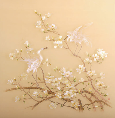 不同角度的清康熙景德镇窑五彩耕织图碗。 上海博物馆供图 编者按:春天在哪里? 春天,在一针一线精心绣出的纹样里,在穿越时空古朴典雅的文物里,在诗词散文韵味悠长的课本里…… 春天是万物复苏的季节,是希望与生机的象征。它不仅是四季轮回的自然现象,也是人类文明的永恒主题。古往今来,春天以不同的形式被记录、传承,绽放新的光彩。本版推出“美丽中国·春天来了”特别报道,让我们在这个春光正好的日子里,感受春天的气息,品味春天的意蕴。 在针线间绣出春天 记者 王伟健 江苏苏州的春天,由玉兰花唤醒。 家住苏州高新区的非遗苏绣传承人姚卓,每年都要绣一些关于春天的苏绣。今年,她绣出的是一幅玉兰白鹭图。 一米见方的画布上,一对身姿优雅的白鹭轻盈地立在枝头,像是在迎着和煦春风翩跹起舞;一朵朵千姿百态的玉兰花竞相绽放,仿佛有缕缕清香溢出,细微之处,生机勃勃、春意盎然。 “把春天‘搬上’苏绣作品并不是件容易的事,一针一线都得精雕细琢。”姚卓说,从画线稿、选底料、勾绷,再到刺绣,每一步都十分讲究。比如白鹭的眼睛、尾部羽毛、玉兰花的花蕊等部位,要密针细线,丝丝入扣,只能用直径不到头发丝1/10的细线来绣,所以得通过“劈丝”,将一根桑蚕丝“劈”成64份,甚至是128份。 排针的疏密、用色的格调等也得讲究,绣出来的画面才有立体感、层次感。姚卓说,白鹭的翅膀处需要密密缝缀,而尾部的羽毛处则需线条轻盈稀疏,这样画面看上去灵动逼真,让小小的苏绣作品展现出春色满园的意境。 在镇湖街道,绣娘们正用针线描绘着春天。走进95后绣娘张露的工作室,只见她正在绷架前飞针走线。前不久,苏州太湖国家湿地公园樱花绽放,她连着仔细观察了两天,创作出一幅樱花苏绣作品,将其制作成一把团扇,取名《樱之恋》。 “把‘春天’握在手中,每一扇都是春的气息。”张露说。 春天不仅看得到,还能摸得着。在苏绣作品《与春共舞》上,外形酷似音符的苔花,竟然能从绣面上“长出来”。作者之一的盛梦菲告诉记者,几年前的一个初春,她在太湖漫山岛采风,无意间看到树桩上长满苔花,她将这种自然之景融入刺绣艺术,用苏绣来展现“蓬勃向上、生态和谐”的春天。 在文物里拾遗春天 记者 曹玲娟 文物照见古人生活,春天的气息扑面而来。 在上海博物馆,馆藏文物清康熙景德镇窑五彩耕织图碗受到观众的喜爱。碗以五彩装饰,碗心绘牧童骑牛,并将斗笠高高抛起;外壁绘农夫驱使水牛耖田的场景。“耖”,是土地经过耕、耙之后的下一道工序,进一步破碎土块,使水田平整、土肥相融。春和景明,万物复苏,一幅春耕的景象跃然眼前。 明代文徵明的《江南春词意图卷》,同样藏于上海博物馆。只见画中人怡然自得,或骑马慢行,或树下闲谈,或亭中远眺,或泛舟湖上,正是踏青悠游、旖旎春景。画面淡雅秀润,草长莺飞,春林初盛。此刻,纸上一笔春风未画,却有江南气息氤氲其中。即使是近500年后,我们依然能通过文徵明的视角,感受盎然的江南春意。 湖石玲珑,花蝶蹁跹,和煦微风中,石竹花轻颤,活泼生姿,望之似书画,近察为女红……同样生活在明代的韩希孟,用丝线绣制出她眼中的春日庭院小景。这是上海博物馆馆藏文物顾绣花卉虫鱼册之湖石花蝶页。“你看,石竹花还有很多花苞,枝头嫩绿,迎着春风飞扬,蝴蝶落在枝头,仿佛春风刚刚拂过,画面充盈着春日的生机勃勃。”上海博物馆研究馆员于颖介绍。 韩希孟用“不绣”来显示花卉蝴蝶的灵动。“底稿不绣满,反而有一种通透感。特别是石竹花,本身花瓣轻薄,在花瓣里少几针,整朵花都轻盈了。白色蝴蝶的鳞毛状态也表现得很逼真,翅膀扑棱几下,仿佛有鳞粉掉下来的感觉。”于颖感慨。 文物里的春天穿越时空,让我们与古人一道,看年年岁岁相似的花,过岁岁年年灿烂的春。 在课本中赏读春天 记者 施 芳 “盼望着,盼望着,东风来了,春天的脚步近了。” 这是朱自清笔下的《春》,自入选语文课本以来,以真挚的情感、细腻的笔触感染着一代又一代学子。 春天,是古往今来诗词散文的永恒主题。语文课本中,许多脍炙人口的佳句,呈现出一幅五彩斑斓的春日图景: “草长莺飞二月天,拂堤杨柳醉春烟”是早春二月的田园风光;“三月的桃花水,舞动着绮丽的朝霞,向前流啊。有一千朵桃花,点点洒在河面,有一万个小酒窝,在水中回旋”是阳春三月的春水滋润大地。 春天,是文学家笔下流动的风景。在艾青的诗中,“刮的风是绿的,下的雨是绿的,流的水是绿的,阳光也是绿的”;在郑振铎的笔下,“小燕子带了它的剪刀似的尾巴,在阳光满地时,斜飞于旷亮无比的天空,叽的一声,已由这里的稻田上,飞到那边的高柳下了”…… 一年之计在于春。从“春季里,春风吹,花开草长蝴蝶飞。麦苗儿多嫩,桑叶儿正肥”,到“春天是植树的季节……今天,我们在这里植树,再过十年、二十年,这里也将是一片青葱翠绿”,无不强调春耕春种的重要性。 春雨贵如油。“雨是最寻常的,一下就是三两天。可别恼。看,像牛毛,像花针,像细丝,密密地斜织着,人家屋顶上全笼着一层薄烟”“可是只要经过一场春雨的洗淋,那种颜色和神态是难以想象的。每一棵树仿佛都睁开特别明亮的眼睛,树枝的手臂也顿时柔软了……”无论是朱自清笔下细密静谧的春雨,还是刘湛秋笔下清新柔美的春雨,都散发着春天独有的