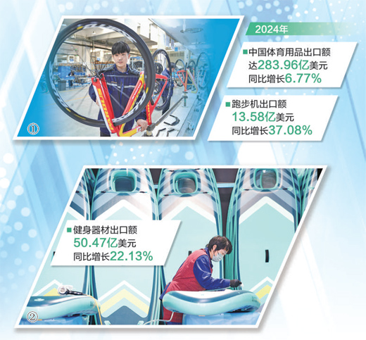 图①:山东省乐陵市,一家企业的碳纤维自行车生产线正在赶制出口海外的订单产品。 贾 鹏摄(人民视觉) 图②:江苏省宿迁市泗洪县,工人加紧生产出口欧美的冲浪板。 许昌亮摄(人民视觉) 数据来源:中国体育用品业联合会 核心阅读 近期,中国体育用品业联合会公布了2024年国产体育用品外贸数据:出口额283.96亿美元,同比增长6.77%,展现了我国体育用品制造业的强劲韧性和广阔前景。各家企业发挥产能优势、形成产业链条,致力创新、打造品牌,积极拓展海外市场,竞争力和影响力日益增强。 哈尔滨亚冬会开幕式后,国际奥委会主席巴赫专程前往福建,拜访中国体育企业,让人感受到体育用品“中国制造”的影响力和认可度。在海外,许多消费者都在通过跨境电商,购买中国的滑雪装备。 一款中国产的羽毛球,成为国外一项青少年锦标赛官方用球。与传统的“棉线加胶水”不同,这款羽毛球采用“改性尼龙植毛架”新型工艺,更耐用、更好打。“凭借多项专利,这款羽毛球在海外市场很受欢迎。”安徽三才体育用品有限公司董事长戴见霖说。 赛场上,装备科技含量满满;赛场外,消费者忙着找同款链接——这正是中国体育用品行业蓬勃发展的体现。随着国际体育市场需求逐步恢复,我国体育用品的外贸“朋友圈”不断扩大,新的增长空间已然敞开。 优势:产能稳定,链条完备 今年春节假期后,位于山东青岛即墨区的英派斯工业园格外忙碌,海外的健身器材订单源源不断涌来。 生产一线的工人们开启两班制,为了按期交付开足马力;铁材车间,冲压声、焊接声此起彼伏;装配车间里,大家分工协作,用心测量经手的每一个零部件;包装线上,一群年轻人麻利地装箱码垛。 跑步机、椭圆机、动感单车……英派斯的许多产品已成功进入欧美市场。凭借设计研发实力与先进生产模式,产品精准满足个性化需求,国际客户越来越多。“光一台跑步机,相关零配件就有100多个,小到螺丝钉,大到跑带,都得经得起市场检验。我们与200多家供应商展开了合作,做优产品质量。”英派斯董事长、总裁刘洪涛介绍。 数据显示,2024年,我国制造的健身器材出口达50.47亿美元,同比增长22.13%,连续两年实现增长。中国体育用品业联合会副秘书长焦妮认为,经过全球供应链重构和“去库存化”调整,国际体育用品市场释放出整体恢复的积极信号。尤其是在健身器材生产制造领域,中国体育用品企业拥有完备的产业链规模优势,出货速度快、交货能力强、产品线丰富。 “一些国家虽然具备生产能力,但经济成本难以控制,而中国企业从原材料到成品制造,上下游环节高度自主化,不仅保证了产能稳定,还在价格上具有较强的竞争力。”焦妮说。 策略:致力创新,打造品牌 年产值1.5亿元,其中9000万元出口,同比增长近50%。看着2024年自家羽毛球产品出口账单,戴见霖对扩大产能更有底气:“去年,我们收购了一家羽毛毛片加工厂,原材料供应更有保障,今年销售量有望翻番。” 信心,还来源于品类创新和技术创新。自动化生产,制成一个球平均只要90秒时间;凭借“三段式”和“无线圈”两项羽毛球品类创新,不仅提高了羽毛的利用率,还将生产成本降低至传统羽毛球的1/2,同时耐打度提升了2至3倍。 “我们的羽毛球远销70多个国家和地区。许多外国客户见到我们的产品后,主动找上门来。现在,订单已经排到四五个月之后了。”戴见霖介绍。 随着创新和研发能力的提升,许多中国企业从单纯的代加工转向打造自主品牌。 数据显示,从我国出口贸易结构来看,加工贸易占比从上世纪末的55%左右降至目前的20%以下,一般贸易占比提升至近70%。一升一降之间,反映着体育制造业转型升级的成效。 以鞋服代工起步的福建体育制造业,近年来在海外市场有着十分亮眼的表现。巴黎奥运会前夕,厦门海关累计验放服装、运动鞋等供国际奥委会装备出口23批、1.9万件。 从出口增长到品牌营销,再到与国际赛事、国际代言合作,当“价格优势”逐渐成为“价值优势”,中国体育用品在国际市场上影响力越来越大。 目标:拓展市场,撬动增量 2024年,我国对160多个国家和地区的出口实现增长,其中对共建“一带一路”国家整体增长9.6%,对东盟增长13.4%。东南亚、中东、拉美等新兴市场潜力持续释放,面向这些地区的体育用品出口增速快,吸引中国体育企业主动布局。 去年,为进一步优化生产和物流成本,江苏文明人造草坪有限公司分别在新疆霍尔果斯和贵州六盘水新建了两座工厂。“选址主要是考虑直接面向中亚和东南亚市场,同时通过当地的人力及供应链等优势资源,降低整体运营成本,打开销售渠道。”副总经理陶巍表示,公司已有在东南亚当地建厂的计划。 据介绍,江苏文明的年销售额4亿元左右,其中70%来自海外市场。在陶巍看来,行业竞争激烈,拓展海外市场、撬动增量,势在必行。“以中亚市场为例,目前正处于高速发展期,互联互通、人文交流等潜在需求,给企业带来了很多利好,公司有望在运动场地、景观绿化等领域获得更大份额,预计未来在新兴市场能实现20%—30%的年增长率。”陶巍说。 目前,中国体育用品业联合会正通过组织海外展会、考察活动等多元化举措,助力国内体育用品企业开拓新兴市场。焦妮介绍,2024年11月,中国体博会首次在印尼成功举办海外展。今年,还计划6月在迪拜、11月在印尼举行两次博览会。 “联合会还规划