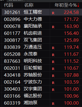 今日早盘,A股整体呈现探底回升的走势,主要股指日K线均收出长下影线,大盘蓝筹股表现稍强,上证50指数率先翻红,沪深300坚守4000点大关。下跌个股多于上涨个股,成交略有萎缩的趋势。 盘面上,减速器、电力、人脑工程、家用电器等板块涨幅居前,元器件、电信服务、游戏、影视院线等板块跌幅居前。 减速器领域翻倍牛股频现 减速器概念早间放量拉升,板块指数单边上扬涨逾2%,创历史新高,今年以来累计大涨逾47%,远远超过同期大盘涨幅。 双飞集团直线20%涨停,今年以来累计大涨逾125%;襄阳轴承14个交易日9涨停,今年以来累计飙升近164%;宁波东力一字涨停,近期连续3日封板,年内也涨超103%,韶能股份、青海华鼎等今日也强势涨停,恒工精密、中大力德等逾14股年内涨幅均超100%。