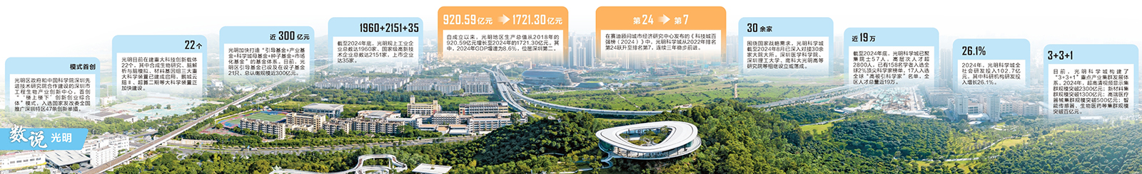 从实验室到生产线,要跨越多远的距离? 在深圳光明科学城,这个答案可能是“50米”。 由知名基础生物学家颜宁院士领衔的深圳医学科学院,距离生物医药企业孵化平台——“湾有引力”(光明生物医药创新中心)仅有50米之遥。实验室中的新发现,能够快速地启动工程化验证,产学研无缝衔接。湾影科技创始人谢思维说,最初选择到深圳湾实验室做科研,正是看中这里的自由氛围,鼓励科学家进行有意义的探索,深圳又有很好的创业氛围,是科研技术成果转化的沃土。作为“湾有引力”孵化的创业公司,湾影科技已先后完成多轮融资,估值数亿元。 15分钟车程外,在深圳市脑科学技术产业创新中心(下称“脑创中心”),布林凯斯首席执行官冯魏巍笑着告诉证券时报记者:“我们即将从这里‘毕业’了。”作为一家专注于工具病毒载体研究及转化医学研究的高新技术企业,布林凯斯由中国科学院深圳先进技术研究院脑疾病转化研究中心主任徐富强创办。从最初的“拎脑入驻”到2024年销售额突破4000万元,入驻脑创中心的两年多时间里,布林凯斯茁壮成长,如今正寻找更广阔的空间,继续逐浪脑科学与类脑智能产业的最前沿。 从科研成果“变身”企业新秀、市场新品,这样的故事一次次在光明科学城上演。这片99平方公里的土地,不仅坐落于深圳最年轻的行政区,还是这座“工业第一城”补齐基础研究、原始创新“拼图”的关键落子。脱胎于深圳这块产业高地,光明科学城自诞生之日起就拥有了与众不同的市场化基因。科研成果以落地转化为导向,不仅要“发论文”,还要“可应用”“能上市”,真正为产业腾飞添上原始创新之翼。 在实现高水平科技自立自强的征途中,光明科学城探索出了一个独特的科研成果产业转化模式。近日,证券时报记者走进光明科学城,问道科学家、对话创业者、采访政府机构,观察一颗颗注入了市场基因的科研种子,如何长成一片片产业森林。 从0到1: 大装置+大院所,孵化科研种子 弹指一挥间,沧海变桑田。将时针回拨至2018年,光明区正式揭牌成立。当时,摆在人们面前的问题是:如何在这片以田园和农场为主、稻香与蛙鸣交织的“白纸”上,造出一座崭新现代、以“科学”为特色的产业新城? 工欲善其事,必先利其器。开展基础研究,正如孵化一粒粒种子,必须为其生长发育打造优质的培养皿——建设大科学装置、集聚大科研院所,为科学城发展打下坚实地基。 同一年,深圳合成生物研究重大科技基础设施项目(下称“合成生物大设施”)在光明科学城率先落地。据牵头建设单位中国科学院深圳先进技术研究院合成生物学研究所(下称“合成所”)有关负责人介绍,合成生物大设施是目前全球规模最大的研究合成生物学的大科学装置,通过人工智能结合自动化实验技术代替传统人工操作,实现生物实验过程规模化、标准化和自动化,已于2024年12月启动运行。 质粒载体制备岛、菌株生长在线分析岛、DNA转化与涂布功能岛……走进合成生物大设施,一个个透明的长方形自动化功能岛台依次排布。功能岛台内,机械臂有序挥舞,将生物试剂和样品准确地放进微孔板中,快速地完成菌株筛选、基因编辑和数据采集等任务。传统的手工实验,在自动化设备的赋能下变得更高效,提高了研究效率,缩短了研发周期。 与合成生物大设施仅一连廊相隔,另外一大“国之重器”——脑解析与脑模拟重大科技基础设施也已启动运行。据中国科学院深圳先进技术研究院脑认知与脑疾病研究所所长、深港脑院院长王立平介绍,这是全球首个大规模跨物种综合性脑科学创新科研平台,包括啮齿类及灵长类脑结构与功能解析、脑功能与脑疾病相关基因编辑模型制备、脑多模态数据三大模块,可支持科研人员进行重大脑疾病早诊优治新技术开发研发和产业化。 “深圳是一座深植创新创业基因的城市。光明科学城是深圳在企业创新为主的禀赋上,加持‘国之重器’——重大科技基础设施,补齐自身在基础研究和原始创新的‘拼图’,支撑培育一批具有新质生产力的专精特新、隐形冠军、独角兽企业,打造深圳产业集群源源不断的强大‘后备军’。”在谈及光明科学城的与众不同之处时,深圳市光明区发展和改革局有关负责人向记者表示。 目前,光明科学城聚焦信息、生命、新材料三大领域,目前在建设运营的重大科技创新载体达到22个。其中,合成生物研究、脑解析与脑模拟、材料基因组三大科学设施已建成启用,鹏城云脑Ⅲ、深圳超算二期、自由电子激光等正加快建设。 除了大科学装置,作为基础科研的“摇篮”,近年来一批大院大所也纷纷落户光明科学城。2023年,深圳医学科学院正式成立,该院是集医学综合研究、人才培养和成果转化为一体的高级学术机构,致力于打造生物医药的“东方大湾区”;2024年,深圳理工大学揭牌成立,首届本科生已于当年8月底正式入学。据了解,深圳理工大学每周五都不安排课程,目的是让学生在这天“泡”在实验室里,有更多时间开展基础性、前沿性的科研实践…… 从重大科技设施到高水平大学、研究机构,不到7年时间,光明科学城就集聚了源头创新所需要的优质科研资源。这些科研资源不仅是基础研究的基石,更是产业创新的源头活水,区内的创新企业畅游其中,“如鱼得水”。“光明科学城集聚了一批重大科技创新载体和重大设施平台,为企