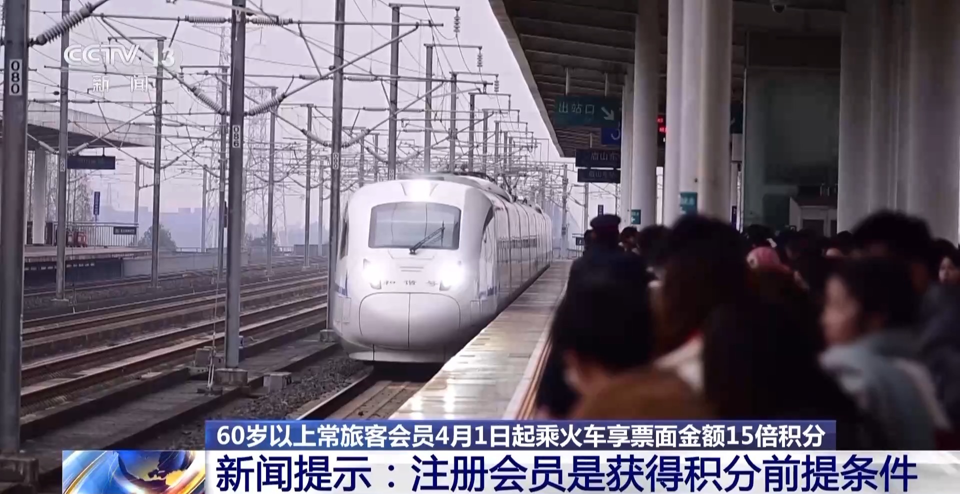 另外,今年4月1日起,年满60周岁的常旅客会员乘坐旅游列车和国际列车之外的普通旅客列车时将获得票面金额15倍的积分,相当于普通常旅客会员的3倍,即花费1000元乘坐火车,可获赠1.5万积分,兑换火车票时可抵150元使用。铁路方面提醒,注册会员是获得积分的前提条件。