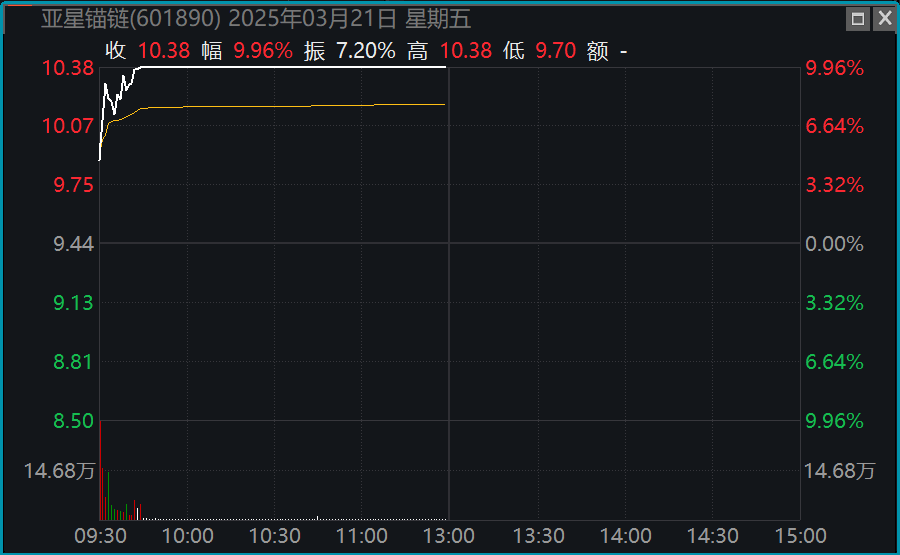 渔业、航海装备、航运概念、航运港口等相关海洋经济细分板块纷纷逆势走强,亚星锚链、开创国际、东方海洋、润邦股份等涨停。