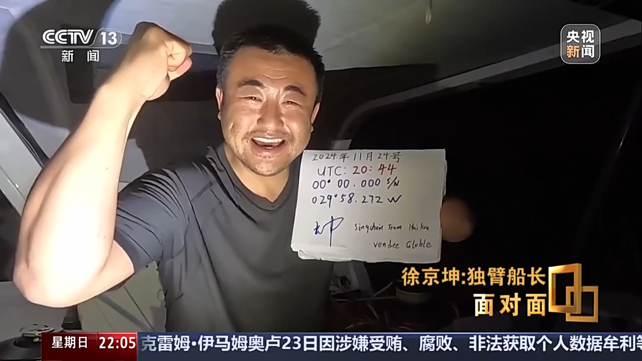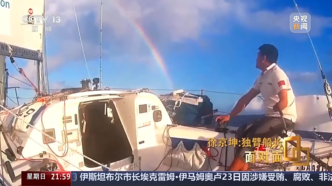 99天的时间,大海茫茫,时常一个人都见不到。在徐京坤出发之前,他的妻子为他准备了不同的盲盒,放置在船舱的不同位置,每周一次发短信给徐京坤,让他找到并拆开精心准备的盲盒。 徐京坤:她很了解我和船的情况,几乎完美地预测了我大概的轨迹。比如我读到了好望角的信,我正好就会在好望角的附近,我读了合恩角,我就会在合恩角的附近,很有意思。 航行到第94天,徐京坤驾驶的帆船距离法国西海岸只剩下了最后的两千海里,再过四五天的时间,他就可以顺利返回到比赛的终点。但就在这个时候,船上的发电机突然停止了工作。 徐京坤尝试了多种修理方案,但都没有效果。而当时,船上蓄电池的电量,只能够维持船上的设备运行三个小时左右。