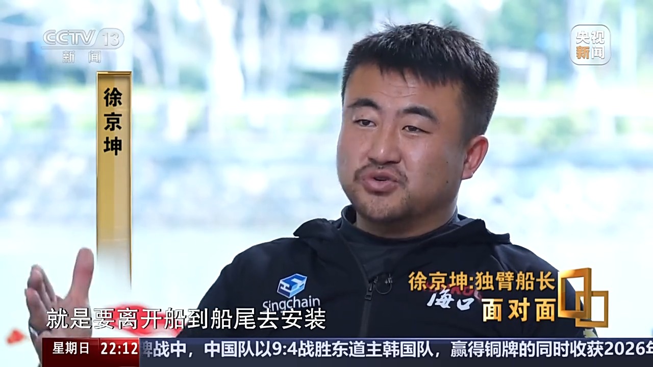 徐京坤:最后想到了一个方案,也是最危险的一个方案,就是要离开船到船尾去安装损坏掉的水力发电机支架,让水力发电机重新恢复工作,在晚上操作难度非常高。修了一个小时,安装好的那一刻,有一种得救了的感觉。
