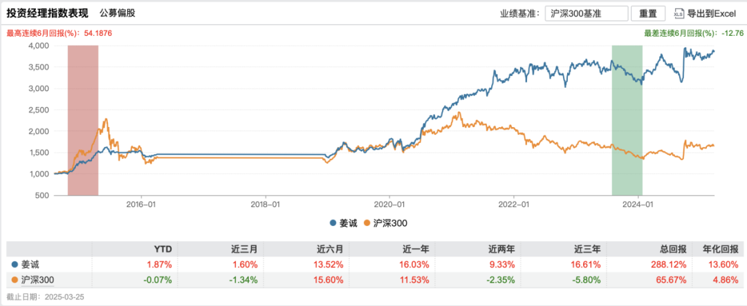 公开资料显示,姜诚拥有上海财经大学硕士研究生学位。他于2006年7月至2010年9月担任国泰君安证券股份有限公司资产委托管理部投资经理;2010年9月至2011年12月,担任安信基金筹备组研究部总经理;2011年12月至2016年4月,历任安信基金管理有限责任公司研究部总经理、基金投资部总经理;2016年4月,他加入中泰证券(上海)资产管理有限公司,历任机构投资部总经理、基金业务部总经理(期间曾兼任研究部总经理)、权益公募投资部总经理。现任中泰证券(上海)资产管理有限公司副总经理兼权益公募投资部总经理。 投资风格稳健,坚持价值投资理念 姜诚是一位典型的价值投资者,其投资理念和风格以稳健、长期为导向。以长期复利的视角审视上市公司,淡化短期择时;以多情景假设构造安全边际,不盲目依赖乐观预测,持股周期较长,投资理念强调“不赚快钱”的耐心与纪律性。 姜诚主张投资企业的整个生命周期,而非短期景气周期。他偏好已通过时间检验、具备长期稳定盈利能力的企业,如传统行业的龙头企业,认为这些企业能“用过往为未来背书”,他同时认为,中国科技已进入崛起阶段,但需时间验证哪些企业能成为“高概率赢家”。他选择等待更清晰的竞争格局,而非押注未经验证的标的。 无论是从管理规模还是投资业绩上看,姜诚都称得上中泰证券资管的投研“主心骨”,他自2018年12月5日担任中泰星元价值优选基金经理,之后陆续掌管中泰玉衡价值优选、中泰兴诚价值一年持有等多只基金。截至2024年年末,其管理的基金规模达到135.80亿元,占中泰证券资管非货规模比重超过35%,占权益类基金(股票型基金+混合型基金)规模比重超过76%。