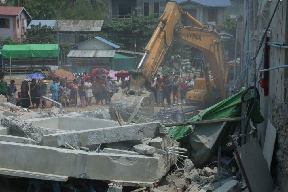 ↑↓这是3月29日在缅甸曼德勒拍摄的救援现场。