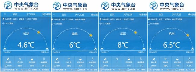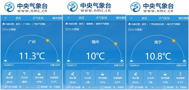 15时左右气温实况看,除了云南和海南岛,长江以南大部分地区气温都跌至10℃出头,甚至只有个位数。长沙4.6℃、杭州6.5℃、贵阳3.4℃、南宁10.8℃、广州11.3℃……