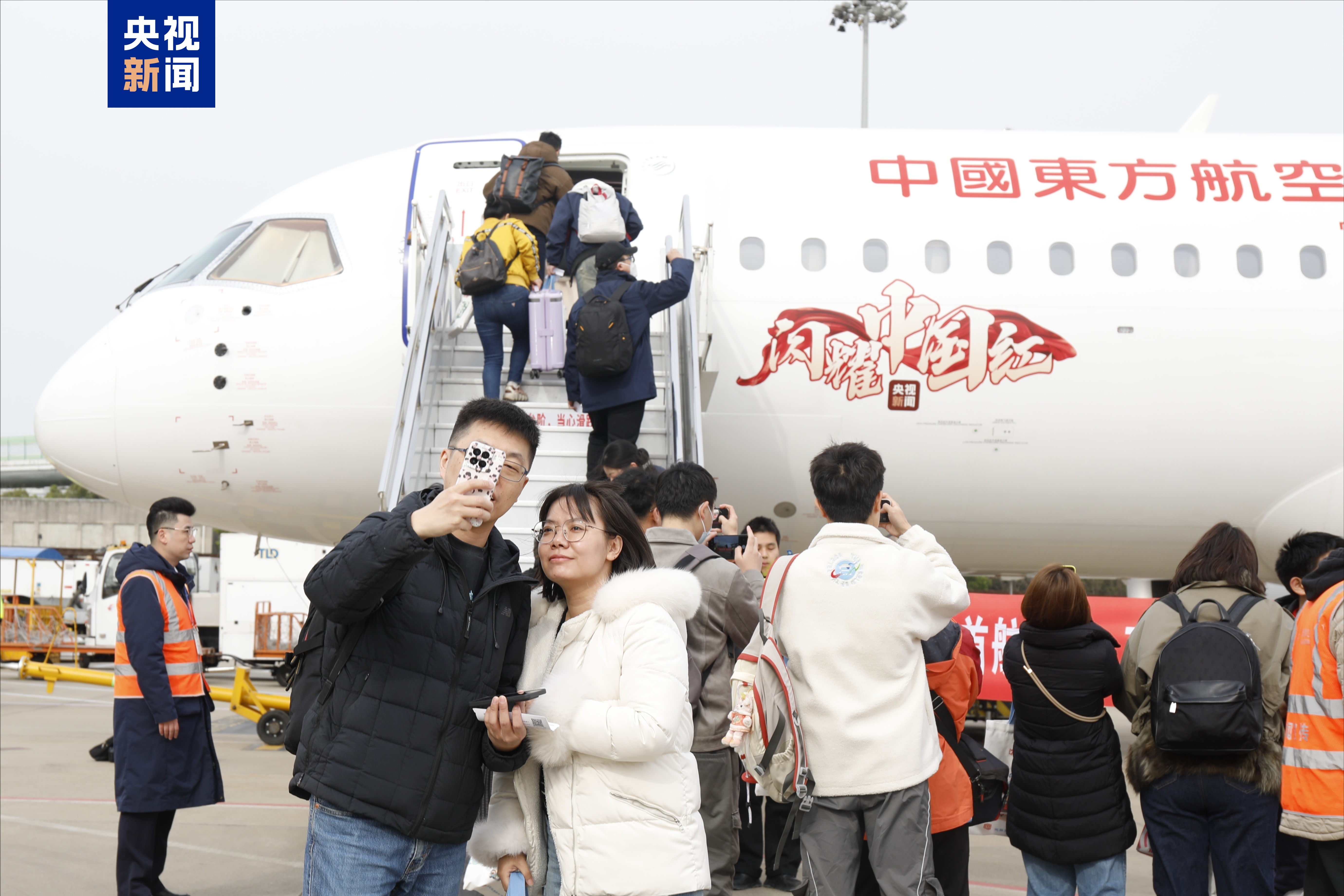 值得一提的是,执行首航任务的C919飞机机号为B-658E,机身有“闪耀中国红”涂装,还具备全国产客舱局域网服务功能。飞机客舱内的每个座椅都有“客舱局域网”提示标签,能够为旅客提供更加丰富灵活的机上娱乐体验。旅客可通过具有Wi-Fi功能的移动个人电子设备,在开启飞行模式后,进入局域网平台,看电影、玩游戏享受精彩旅程。