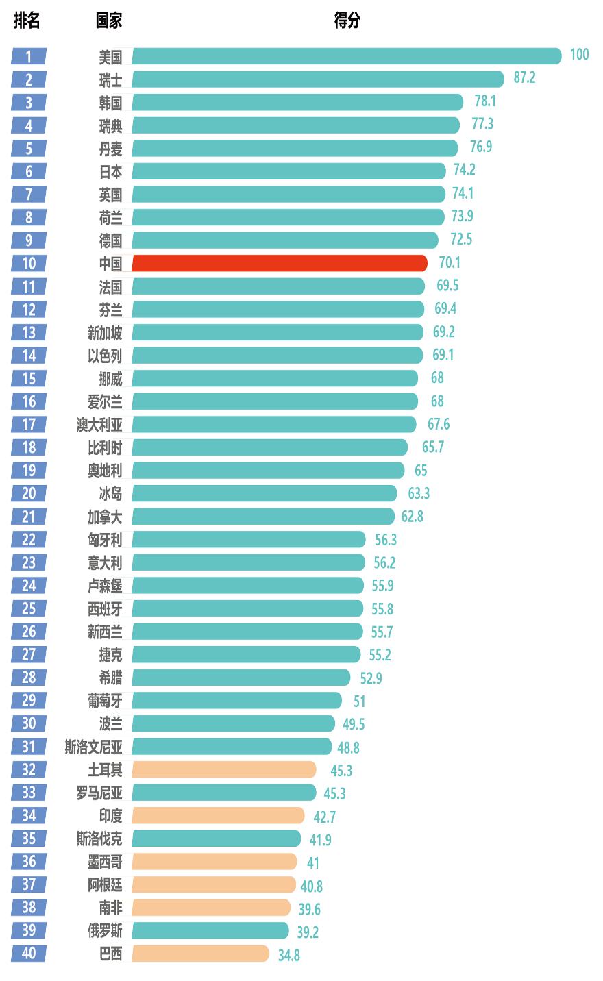 该报告从创新资源、知识创造、企业创新、创新绩效和创新环境5个维度构建了评价指标体系,针对世界40个国家(其研发投入总和占全球95%以上,GDP之和占世界85%以上,人口总数约占世界的60%)开展创新能力评价。新一期报告对标科技强国要素特征,进一步优化和完善了评价指标体系。 结果显示,2024年,中国国家创新指数综合排名世界第10位,相比2012年的第20位提升10个位次,是近十余年来进步最快的国家,也是唯一进入世界前十行列的中等收入国家。 就具体得分而言,中国国家创新指数得分为70.1分,超过法国,与日本、英国、德国等排名5—9位国家间的差距在2.4—6.8分之间,中国主要指标增速高于发达国家水平。 “中国创新能力接近人均GDP在5万美元左右的欧洲国家,且仍处于稳步上升的通道。”中国科学技术发展战略研究院技术预测与统计分析研究所所长玄兆辉研究员说。 责编:伍镆 一审:印奕帆 二审:蒋俊 三审:谭登 来源:科技日报 |