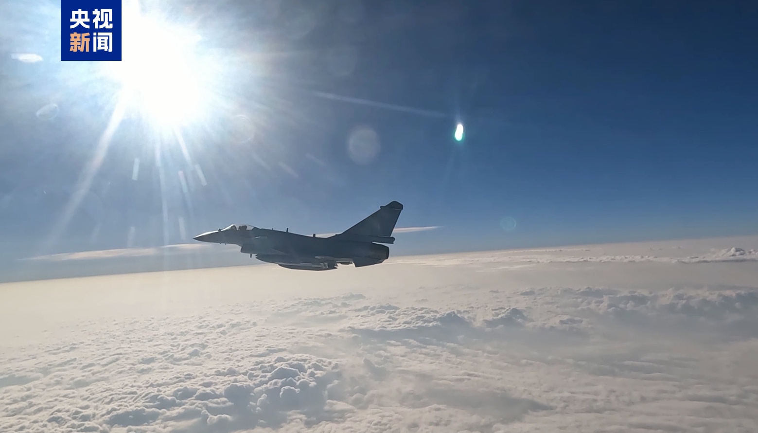 东部战区空军梯次出动数十架次歼击机、轰炸机,位台湾海峡与台岛南北两端成体系破限进逼,干扰机、加油机在空提供策应支援。在预警机的引导指挥下,空中编队与海上驱护舰、地空导弹建立协同,实施区域夺权、空中截击等演练。