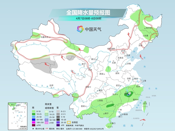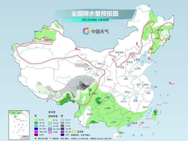 今天(4月5日),我国南北多地仍将出现降温,多地将由偏暖转为偏冷,局地降温幅度可达10℃左右。此外,今后三天我国仍将维持北方晴朗多风,南方多阴雨的天气格局,其中今天部分地区的降温将叠加有大风或阴雨天气,体感将更为寒凉,公众请注意及时调整衣物。 未来三天北方晴朗干燥多风 南方阴雨持续 昨天,我国北方依然维持着干燥多风的天气格局,南方的阴雨天气则明显增多,此外,青藏高原东部等地出现了雨雪天气。监测显示,西藏东北部、川西高原中北部及内蒙古东部、黑龙江西北部等地部分地区出现小到中雪或雨夹雪,西藏昌都和四川甘孜局地降水量10~14毫米;西藏东南部、四川盆地西南部及吉林南部、辽宁中部、福建南部、广东东北部等地部分地区出现中雨,局地大雨。 未来三天,我国整体天气格局变化不大,仍会维持北晴南雨的态势,其中南方大部的降雨以稳定性降水为主,不过在广西一带会有些对流天气。此外,今明两天青藏高原东部等地的雨雪天气仍会持续,并且今天川西高原北部等地或现暴雪。 具体来看,中央气象台预计,今天,黑龙江东南部、吉林东部、新疆沿天山地区、西藏东北部、青海北部和南部、甘肃南部、川西高原中北部等地部分地区有小到中雪或雨夹雪,其中,川西高原北部等地部分地区有大到暴雪。新疆伊犁河谷、西藏东南部、黑龙江西部和南部、吉林中西部、辽宁东部、湖南南部和西部、广东、广西、四川盆地、重庆、贵州、云南大部、台湾岛等地部分地区有小到中雨,其中,西藏东南部、四川盆地东南部等地部分地区有大雨。