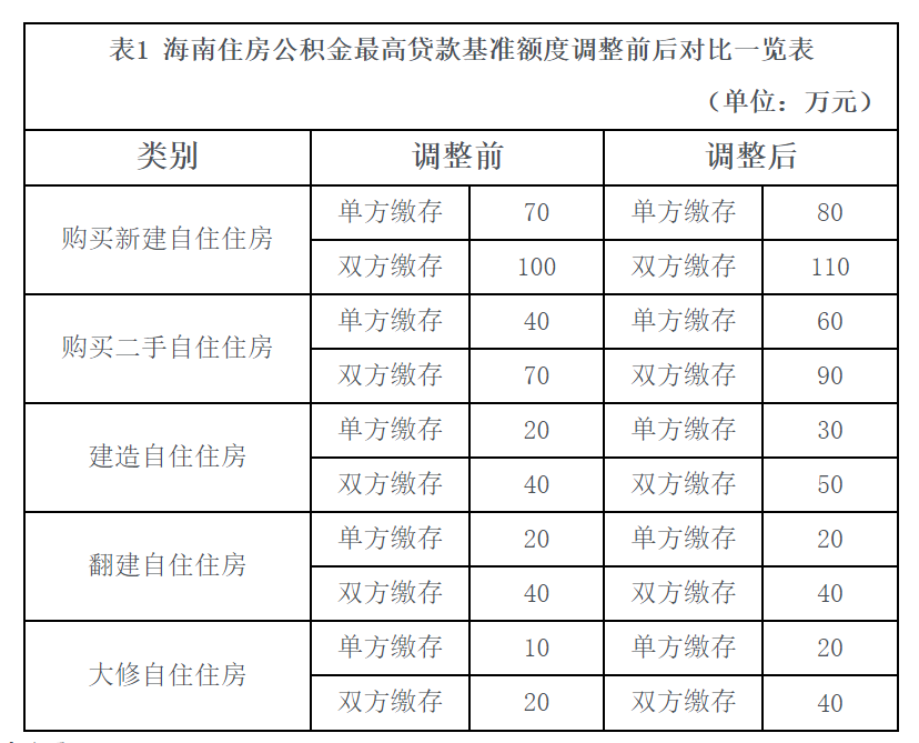 其中提出,对各住房类型最高贷款基准额度进行额度调整。如下表1。