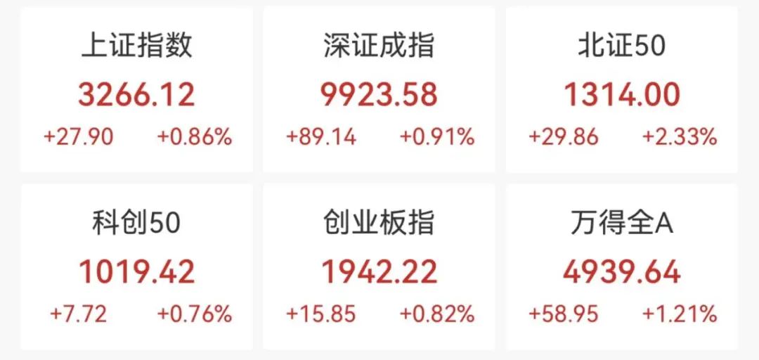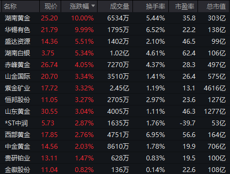 【导读】热搜第一!金价再创新高! 新的一周开始了,一起来看下上午的市场情况及资讯。 4月14日上午,A股市场震荡反弹,截至午间收盘,沪指涨0.86%,深成指涨0.91%,创业板指涨0.82%。全市场超4800只个股上涨。 ![]() 板块上来看,金价再创新高,贵金属板块表现活跃,海南本地股、电子商务、零售、汽车等板块震荡走强;而工业机械、航空运输、家电等板块震荡调整。 港股方面,三大指数均涨超2%,恒生科技指数领涨,小鹏汽车、阿里巴巴、百度集团、蔚来均涨超5%。 ![]() ![]() 金价再创新高 贵金属板块表现活跃,湖南黄金、华锡有色双双涨停,盛达资源、湖南白银、赤峰黄金等跟涨。 ![]() 现货黄金价格早盘快速拉升,突破前高并将历史高位刷新至3245.73美元/盎司。 金价相关话题冲上热搜第一。 ![]() 消息面上,美国3月通胀数据低于预期,进一步增强了市场对美联储可能最早在6月开始降息的预期。 此外,高盛将年末黄金预测上调至每盎司3700美元,此前为每盎司3300美元。大摩分析师指出,各国央行增加黄金储备和投资者买入黄金是推升国际金价的两大主要因素,在美联储降息背景下,国际金价受到更多有利因素支持。目前实物需求稳定,预计资金刚刚开始流入ETF,在这种情况下,今年国际金价可能升至3300~3400美元/盎司。