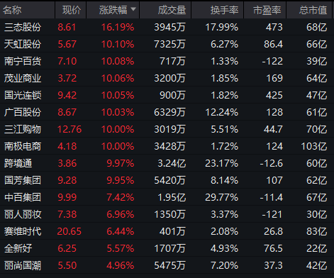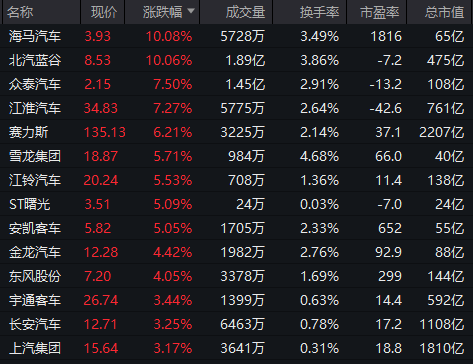 海南本地股异动拉升 大消费板块表现活跃 海南本地股异动拉升,海德股份、海汽集团涨停,海南高速、海南瑞泽、欣龙控股等跟涨。 ![]() 此外,大消费板块盘中走强,零售、首发经济、餐饮旅游等板块震荡拉升,天虹股份、南宁百货、茂业商业等多股涨停。 ![]() 消息面上,近日,海南省人民政府办公厅印发《海南省提振和扩大消费三年行动方案》。其中提到,加大财政支持力度。2025~2027年,统筹各级财政资金100亿元以上,支持海南省提振和扩大消费。2025年对符合条件的个人消费贷款和消费领域的服务业经营主体贷款给予财政贴息。 汽车整车股震荡走高 汽车整车股震荡走高,海马汽车、北汽蓝谷涨停,众泰汽车、江淮汽车、赛力斯等涨超5%。 ![]() 消息面上,据“玉渊谭天”4月13日消息,中欧双方已经开始就开展电动汽车价格承诺谈判进行接触。 中国汽车工业协会发布的数据显示,2025年3月,中国汽车总体出口50.7万辆,环比增长14.9%,同比增长1%。今年一季度,中国汽车出口142万辆,同比增长7.3%。一季度中国汽车整车出口保持稳步增长,新能源汽车出口增长尤为明显。 (文章来源:中国基金报) |