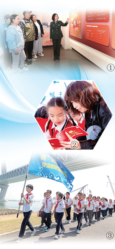 图①:在西柏坡国家安全教育馆,讲解员正为观众进行讲解。 梁子栋摄 图②:在天津“国安号”主题游船上,缘诚小学老师为学生讲解国家安全知识。 潘立峰摄 图③:江苏常州新北区罗溪中心小学学生开展国家安全主题行走的思政课活动。 杨嘉文摄 今年4月15日,是第十个全民国家安全教育日。各地以“全民国家安全教育 走深走实十周年”为主题开展形式多样的宣教活动,推动国家安全宣传教育实现进机关、进学校、进企业、进乡村、进社区、进军营、进网络。 本期法治版选取一堂国家安全课、一个国家安全宣讲团、一个国家安全教育馆、一次国家安全海岛行活动,展现各地增强群众国家安全意识、筑牢国家安全人民防线的生动场景。 ——编 者 一堂行走的国家安全思政课 记者 白光迪 近日,江苏省常州市新北区罗溪中心小学教学楼前,30名五年级学生代表整装待发,从学校国防教育展厅出发,依次参观长江之畔的“渡江一号”新时代文明实践点、“长江一号”新时代文明实践点,通过沉浸体验、互动问答、情景课堂等形式,上一堂行走的国家安全思政课。 嘹亮的军号声中,同学们仿佛置身军营,被国防教育展厅里各式各样的照片所吸引。 同学们边走边看,边问边记,来到一墙之隔的航空体验馆。“哇!你们看这架飞机真漂亮。”大家随声音望去,国产C919大飞机模型就在场馆正中间,同学们瞪大眼睛,专注地欣赏着大国重器之美。带队老师杨继芬用生动形象的语言讲述了“科技自立自强”的现实意义。 接下来,同学们来到长江边的“渡江一号”新时代文明实践点。 “当年就是在这里,魏村义渡一号船的船老大秦长贵凭着娴熟的驾驶技巧和对水路的熟悉,避开敌人重重炮火,第一个驾船把解放军指战员们送上岸……”杨继芬说。 “老师,小木船怎么能在枪林弹雨中坚持那么多次往返?”五年级一班的学生邢翊宸在听完“扬子江上英雄船”的事迹后追问。 “因为船工们把生死置之度外,他们心中只有一个信念——送解放军过江!”同学们听后发出惊叹,“是英雄们用生命换来我们今天的安宁。” 同学们站上江堤,抬头是宛如巨龙的常泰长江大桥,课本里的“天堑变通途”就在眼前;四周草木萌发,芦苇丛中惊起的白鹭划破春日寂静。 “长江里生活着4300多种水生生物,我们每个人都要争当生态环保卫士,守护我们的母亲河。”登上“长江一号”新时代文明实践点,常州工学院马克思主义学院讲师程绫绡为学生们带来了一堂沉浸式的生态安全课。 阳光洒在长江之上,江水与天空融为一色,思政课也画上了句号。回程途中,孩子们还在热议:“原来国家安全不只是战士站岗,还是我们把知识变成科技创新的力量”“国家安全不仅仅是国家的事,更是每个人的事”…… 从航天国防到红色记忆,再到长江大保护,不同层面的国家安全逐渐变得立体起来,孩子们对国家安全的理解又加深许多。 “这堂行走的思政课,让我们触摸到国家安全的立体维度,通过可触可感的教育场景,让青少年在行走中深刻理解总体国家安全观的丰富内涵,理解国家安全的千钧分量。”罗溪中心小学校长鄂汉东说。 一个“潮”起来的宣讲团 记者 刘新吾 “大家见面常问‘吃了吗?’,粮食安全和咱们每个人息息相关。” “安全警钟常鸣响,线索发现莫彷徨。一旦发现间谍行为,请拨打12339举报。” ………… 4月8日,走进重庆金山大厦,一场别开生面的理论宣讲正在进行。重庆市大学生总体国家安全观宣讲团的成员们通过个人宣讲、快问快答、集体朗诵等丰富多样的形式,生动解读总体国家安全观的丰富内涵。机关和社区干部们听得饶有兴致,每到精彩处,现场响起阵阵掌声。 这支宣讲团由西南政法大学本硕博不同专业的100余名学生组成,2019年3月成立以来,宣讲团依托学校国家安全学、法学等学科优势,坚持按照理论学习—调查研究—集体撰稿—审稿把关—讲演设计—集体彩排—现场宣讲“七步宣讲工作法”,累计开展线上线下宣讲800多场次,累计参与宣讲学生达3000余人次,足迹遍布25个省份。 如今,从机关单位到社区学校,从生产一线到田间地头,都活跃着宣讲团成员的身影。 在成渝智能复兴号列车的车厢内,他们向乘客普及国家安全知识;在社区的街头巷尾,他们为基层群众演绎通俗易懂的国安故事;在全国多所大中小学,他们激励青少年学生为国家安全添砖加瓦…… 如何增强宣讲吸引力,让国家安全意识深入人心、落地生根? 宣讲团的师生们坚持点面结合,以“小切口”呈现“大主题”,让理论宣讲“活”起来、“潮”起来。 “虽然之前就对国家安全有所了解,但听了宣讲后,还是很有收获,让我对这方面有了更深的认知。”礼嘉街道社区工作人员张银峰一边说,一边拿出手机记录宣讲瞬间。 讲好讲活理论,首先要提高自身理论水平。宣讲团将宣传教育与人才培养相结合,组织开展总体国家安全观学术研讨和理论阐释研究,提高成员理论水平。 闲暇课余,宣讲团成员常聚在一起,读原著、学原文、悟原理,对总体国家安全观进行模块化学习。 “加入宣讲团后,不仅了解很多国家安全知识,还遇到了一群志同道合的好朋友,我们一起进步。”宣讲团成员、大二学生田歌说。 既深化内容,挖掘有温度和深度的故事,也创新形式,提升理论宣讲的鲜活度,近年来,宣讲团紧跟新媒体发展形势,紧扣青年群体特点,将线