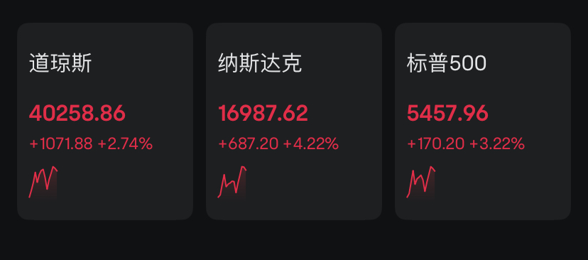 对全球贸易局势的乐观预期开始发酵,风险资产全线大涨。 北京时间4月23日晚间,美股三大指数集体高开。截至发稿,道指涨2.74%,纳指涨4.22%,标普500指数涨3.22%。中国资产表现强势,纳斯达克中国金龙指数涨超4%,盘中涨幅一度扩大至5.6%。 欧洲股市同样直线拉升,截至发稿时,法国CAC40指数上涨2.58%,德国DAX指数涨3.18%,欧洲STOXX50指数涨3.12%。与此同时,美债和美元抛售情绪得到缓解;比特币首次自3月初以来突破9万美元;而现货黄金失守3300美元/盎司。 纳斯达克中国金龙指数涨超4% 北京时间4月23日晚间,市场预期转向乐观,推动美股、欧股市场双双走高。截至发稿,道指涨2.74%,纳指涨4.22%,标普500指数涨3.22%。 ![]() 盘面上,中国资产强势领涨,纳斯达克中国金龙指数涨超4%,盘中该指数一度大涨5.6%。其中,金山云涨超11%,小鹏汽车涨近10%,万国数据涨超7%。