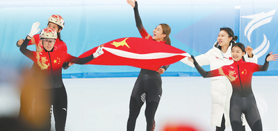 第九届亚冬会短道速滑女子3000米接力A组决赛,中国队夺得冠军。 新华社记者杨磊摄