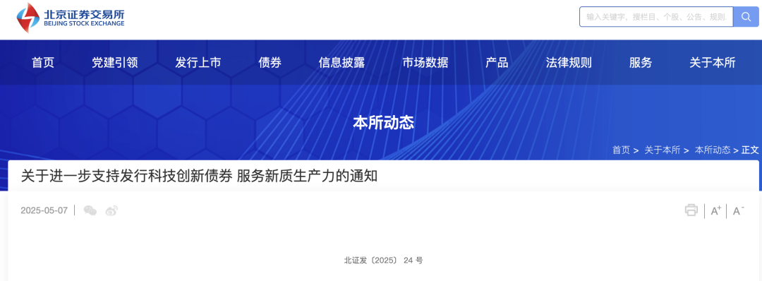 三大交易所:进一步支持发行科技创新债券 服务新质生产力 5月7日,上交所、深交所、北交所分别发布关于进一步支持发行科技创新债券服务新质生产力的通知。通知自发布之日起施行,明确相关业务规则对科技创新债券的规定与通知不一致的,以通知为准。