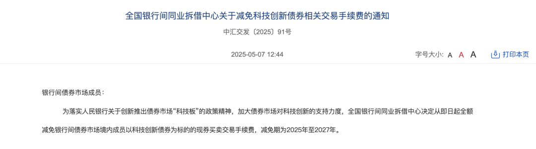 中国人民银行、中国证监会公告。 党的二十届三中全会明确提出,要加快多层次债券市场建设,构建同科技创新相适应的科技金融体制。近日,中国人民银行、中国证监会联合发布关于支持发行科技创新债券有关事宜的公告(中国人民银行 中国证监会公告〔2025〕8号,以下简称《公告》)。《公告》是落实党的二十届三中全会精神的重要举措,有利于拓宽科技创新企业融资渠道,引导债券市场资金投早、投小、投长期、投硬科技,激发科技创新动力和市场活力,助力培育新质生产力。 《公告》从丰富科技创新债券产品体系和完善科技创新债券配套支持机制等方面,对支持科技创新债券发行提出若干举措。主要包括:一是支持金融机构、科技型企业、私募股权投资机构和创业投资机构(以下简称股权投资机构)发行科技创新债券。科技创新债券含公司债券、企业债券、非金融企业债务融资工具等。二是发行人可灵活设置债券条款,鼓励发行长期限债券,更好匹配科技创新领域资金使用特点和需求。三是为科技创新债券融资提供便利,优化债券发行管理,简化信息披露,创新信用评级体系,完善风险分散分担机制等。四是将科技创新债券纳入金融机构科技金融服务质效评估。五是鼓励有条件的地方提供贴息、担保等支持措施。 下一步,中国人民银行、中国证监会将持续完善科技创新债券配套支持机制,引导债券资金更加高效、便捷、低成本投向科技创新领域,提升债券市场服务科技创新能力。 今日,中国人民银行行长潘功胜在参加国新办新闻发布会时表示,前期,中国人民银行会同证监会、金融监管总局、科技部等部门,积极准备推出债券市场“科技板”,支持金融机构、科技型企业、股权投资机构这三类市场主体发行科技创新债券。同时,针对科技型企业、股权投资机构的特点,对科技创新债券的发行交易、信息披露、信用评级等制度安排进行了完善,健全了与科技创新融资特点相适应的配套规则体系。相关政策和准备工作已经基本就绪。目前看,市场各方响应非常积极,各类型金融机构、科技型企业、股权投资机构积极与人民银行、证监会沟通,对接发行科技创新债券的意愿。初步统计,目前有近100家市场机构计划发行超过3000亿元的科技创新债券,预计后续还会有更多机构参与。 此外,为了支持股权投资机构在“科技板”发行长期限的债券融资,人民银行会同证监会借鉴2018年设立民营企业债券融资支持工具的经验,创设了科技创新债券风险分担工具,由人民银行提供低成本的再贷款资金,可以购买科技创新债券,同时与地方政府、市场化增信机构一起,采取多样化的增信措施,共同参与分担债券投资人的违约损失风险,还可以有效降低股权投资机构的发债融资成本,支持其发行更长期限,比如8年期、10年期债券。 潘功胜表示,总之,通过债券市场“科技板”和风险分担工具这些具体政策安排,有利于进一步拓宽科技型企业和股权投资机构的融资渠道,也有利于进一步激发市场活力和信心,带动更多社会资本进入科技创新领域,推动私募股权融资市场与股票发行交易市场相互促进和良性循环。 中国人民银行 中国证监会公告〔2025〕第8号 为贯彻落实党的二十届三中全会精神,加快多层次债券市场发展,构建同科技创新相适应的科技金融体制,加强对国家重大科技任务和科技型中小企业的金融支持,完善长期资本投早、投小、投长期、投硬科技的支持政策,现就支持发行科技创新债券有关事宜公告如下: 一、丰富科技创新债券产品体系,加快构建多层次债券市场 (一)金融机构、科技型企业、私募股权投资机构和创业投资机构(以下简称股权投资机构)等三类机构可发行科技创新债券,募集资金用于支持科技创新领域投融资。 (二)商业银行、证券公司、金融资产投资公司等金融机构可发行科技创新债券,聚焦主责主业,发挥投融资服务专业优势,依法运用募集资金通过贷款,股权、债券、基金投资,资本中介服务等多种途径,专项支持科技创新领域业务。 (三)科技型企业可发行科技创新债券,募集资金用于科技创新领域的产品设计、研发投入、项目建设、运营、并购等。 (四)具有丰富投资经验、出色管理业绩、优秀管理团队的股权投资机构,可发行科技创新债券,募集资金用于私募股权投资基金的设立、扩募等。 (五)发行人可灵活选择发行方式和融资期限,创新设置债券条款,包括含权结构、发行缴款、还本付息等安排,更好匹配资金使用特点及融资需求。 二、完善科技创新债券配套支持机制,为科技创新债券融资提供便利 (六)优化科技创新债券发行管理流程,提升融资效率,支持发行人根据资金使用特点,灵活分期发行。简化科技创新债券信息披露规则,发行人可与投资人约定豁免相关披露信息。金融机构发行科技创新债券可采用余额管理方式。 (七)创新科技创新债券信用评级体系,信用评级机构可根据股权投资机构、科技型企业及科技创新业务的特点,打破传统以资产、规模为重心的评级思路,合理设计专门的评级方法和评级符号,提高评级的前瞻性和区分度。 (八)建立科技创新债券专项承销评价体系和做市机制,组织做市商为科技创新债券提供专门做市报价服务,建立承销、做市联动机制。提高科技创新债券承销、做市在承销商、做市商评价体系中的权重。 (九)各类金融