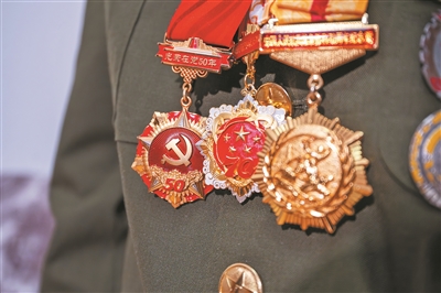 李金水所获的纪念章。 以上图片均为马梦迪摄 编者按:今年是中国人民抗日战争暨世界反法西斯战争胜利80周年。在中国人民14年不屈不挠的浴血奋战中,抗战将士以铮铮铁骨战强敌、以血肉之躯筑长城,前仆后继赴国难。拿起武器坚决战斗时,他们有的是青年,有的还只是孩子。在中华民族到了最危险的时候,为了祖国、为了人民、为了正义,他们奔赴战场、同仇敌忾。 岁月流转,每当回忆起峥嵘岁月,抗战老兵或激昂、或低语,有时微笑、有时落泪,他们的故事是最真实、最动人的民族记忆。本版今起推出“时空对话”系列报道,本报记者走近抗战老兵,听听他们忘不了的事、还牵挂的事,记下他们的故事,让他们的精神激励我们克服一切艰难险阻、为实现中华民族伟大复兴而奋斗。 年近百岁、面容清瘦,却脸色红润、精神矍铄。聊起80多年前的烽火岁月,仍然声音洪亮,思路清晰。眼前这位老人叫李金水,穿着整齐,胸前挂满纪念章。 李金水1927年出生于山西省武乡县下北漳村一户贫苦人家。他所在的下北漳村是“前方鲁艺”学校所在地,1944年,17岁的李金水加入了八路军。 什么是共产党员? “共产党员为了抗日,是不怕死的” 抗战期间,村里一直驻有八路军部队和鲁艺学校宣传抗日救国的师生。“八路军给村里的老百姓挑水、打扫卫生,对我们很好,我就受了很深的影响。”李金水至今还记得当时八路军宣传的主张,“是个有良心的中国人,就应该站出来!” 当时仅有14万人的武乡县,9万多人参加了各类抗日团体,1.46万人参加了八路军,可谓“村村住过八路军,户户出过子弟兵”。1944年2月,17岁的李金水报名参加了八路军。部队番号,老人仍记忆清晰,“我在129师385旅769团2营4连当战士。” 部队在故县(武乡县旧城)与日军展开战斗——那是李金水当兵后第一次打仗,有一种初生牛犊不怕虎的猛劲,往前冲时左腿不幸中弹。“当时我都没有意识到,是连长发现了,为我进行了简单包扎,后来把我送进了医院。” 李金水回忆,连长是走过二万五千里长征的一名老红军战士,看到李金水勇敢战斗的样子后,连长说了一句令他难忘的话:“像个共产党员。”年轻的李金水当时还疑惑:“什么是共产党员?”后来李金水才知道,“共产党员为了抗日,是不怕死的。” 没装备怎么打炮楼? “收集弹药,挖地道炸碉堡,让敌人坐‘土飞机’” 在医院住了4个月,伤病还没痊愈,李金水就又上了战场。“为什么这么急?”李金水回答:“医院小,伤病员多,部队也需要人,我必须归队。”归队后,李金水在1945年光荣加入了中国共产党。 后来,李金水还参加了解放段村(日军在武乡的伪政权驻地)的战斗。“敌人有日本人,也有伪军,我们打掉了敌人一个炮楼。”李金水回忆,后来解放地处太原和长治之间的交通重地刘凹垴时,我军包围了敌人的碉堡,但200多名顽固的日军仍不缴枪。 “怎么办呢?我们当时就收集弹药,挖地道炸碉堡,让敌人坐‘土飞机’。”在抗日战争中,李金水先后三次参加对日军的战斗。“那时候抗日很艰苦呀,装备差距很大。我们很珍惜子弹,战士们不轻易开枪,就怕子弹打完了。” 回顾自己的经历,李金水指着伤腿,眼眶泛起泪花,动情地说:“战场上,多少和我差不多大的战友,跑着跑着就倒下了,为党和人民流尽了最后一滴血。我们活着的人,党对我们很好。应该说,是共产党救了我这一辈子。” 就着雪吃馍是什么滋味? “你们现在不爱吃的,是我们曾经做梦都梦不到的好食物” 抗战胜利后,李金水继续在部队服役。1963年,李金水转业回乡,先后担任武乡县服务公司经理、县机床电器厂党支部书记兼厂长,与乡亲们一起过上好日子。 老兵精神代代相传,儿子、孙子从小听着他的故事长大。在李金水的影响下,他的儿子、孙女婿等多人先后参军。 李金水的孙子李欣,在太原的一所高校里从事纪检工作,经常带着3岁的儿子回县城家里,坐在沙发上一起听老人重温当年的革命故事。 李欣记得,他小时候挑食,父母都管不了。是爷爷抱着他,给他讲随军征战的日子。高粱、黑豆是好饭,野菜、树皮能充饥,冬天的馍冻得像冰疙瘩,就着雪往下咽。李欣问道:“就着雪吃馍是什么滋味?”李金水没有回答,只是告诉孩子们:“你们现在不爱吃的,是我们曾经做梦都梦不到的好食物。一定要珍惜现在的生活,永远不要忘记共产党的好。” 工作后,李欣一直以一名优秀共产党员的标准要求自己。“如今,我也成了一名父亲,我会把爷爷的好作风、好家风传下去,让它成为我们的‘传家之宝’。” 采访快要结束,李金水得知自己的故事将要登在报纸上,眼神亮了起来:“我期待今年抗战胜利纪念日的到来!” ■链接 抗战期间2.2万武乡民众为国捐躯 抗日战争时期,山西武乡与八路军结下不解之缘。从1937年到1942年间,八路军总部机关曾先后五次进驻武乡,在王家峪、砖壁等9个村庄驻扎536天,成为八路军总部进驻次数最多的县,八路军曾有8个旅(纵队)、31个团在武乡征战。 为保卫根据地,八路军先后在长乐村、南关、关家垴、段村等地与日寇进行了大小战斗6368次,平均每日发生战斗2.3次,取得了歼灭日伪军28830人的战绩。 为支持抗战,武乡民众作出巨大贡献和牺牲。仅有14万人口的武乡县,先后有1.46万人参加八路军;只有59万亩土地的武乡县,为八路军捐献粮食达240余万石;为开辟新区,武乡县调出5380名干部,留下了“出兵出粮