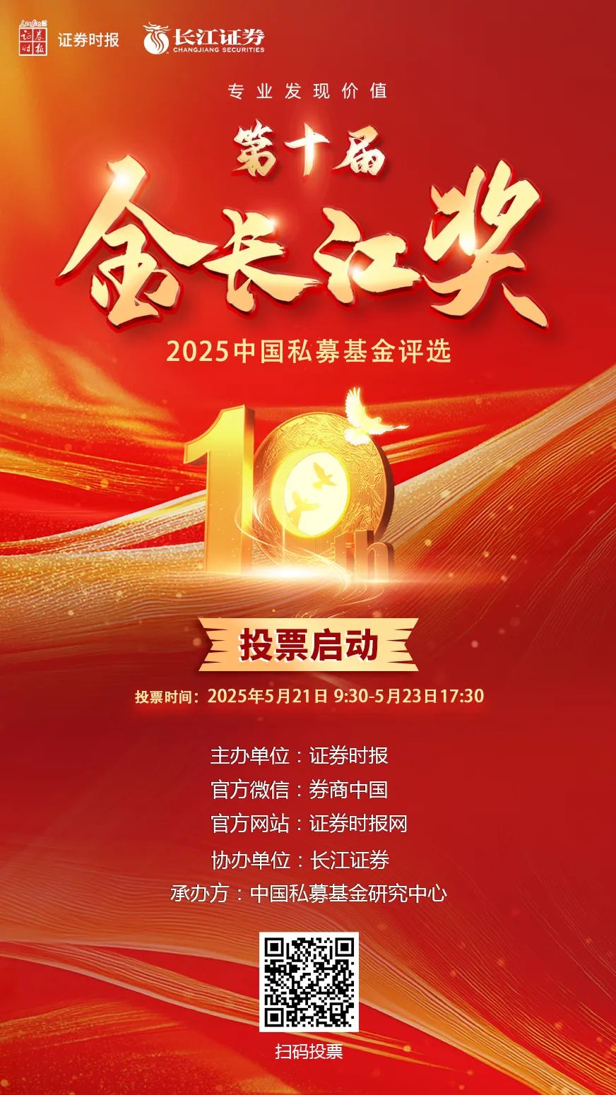 十年星光树立行业标杆! 由证券时报社主办、长江证券协办的第十届中国私募基金“金长江”奖评选,于5月21日开启网络投票。作为中国私募基金行业历时最久的权威奖项之一,该评选自2015年创设以来,历年参与的私募机构从最初60余家发展到如今的超400家,“中国金长江私募基金发展高峰论坛”已发展成为中国私募基金行业一年一度最大的盛会和交流平台。 投票时间:5月21日9:30—5月23日17:30 投票链接:第十届中国私募基金“金长江”奖评选 2015年至2025年,十载春华秋实,鉴往知来;十年星河璀璨,与光同行。“金长江”私募基金评选始终以专业为炬、以公正为尺,丈量中国私募基金行业的奔腾浪潮。本届金长江私募基金评选特别增设“十年风云人物奖”“十年领航机构奖”,致敬引领行业穿越周期的标杆力量。评选坚持中长期考察机制,从管理人、基金经理、产品三大维度设置十二大奖项,全面覆盖量化、宏观、固收等主流策略。 截至2025年3月,私募行业已有19.92万亿元的管理规模,其中,存续私募证券投资基金规模5.25万亿元。当前,中国私募基金行业头部化趋势显著:百亿级私募数量突破80家,管理规模占比超60%,而规模不足5亿元的管理人占比达85%,行业马太效应加剧。 相关数据统计显示,截至2025年3月末,有业绩记录的13032只私募证券产品,一季度平均收益率达4.12%,显著超越同期市场基准表现。从收益分布来看,实现正收益的产品数量达到10173只,占比高达78.06%。 无论市场如何变化,“金长江”私募基金评选始终以专业视角记录行业变迁。现在,您的每一票,都将是对中国私募基金行业发展的鼓励和鞭策,更是促使中国私募基金行业发展的力量源泉! 温馨提示: 1.本次投票时间为2025年5月21日9:30到5月23日17:30。投票人在投票前,请仔细阅读投票说明。 投票链接:https://tp.stcn.com/item/jcj/2024/vote/index.jsp 2.只有公司类和基金经理类奖项参与投票,产品类奖项不参与投票,仅展示各家管理人报送的产品。 3.主办方不会额外通知拉票、刷票等,具体事项请以券商中国微信公众号公示为准。为防止恶意刷票,投票前请先通过证券时报官方认证,如有恶意刷票行为,主办方将直接取消评选资格。 让我们共同为穿越周期的卓越机构、引领趋势的中国私募基金行业先锋们投出关键一票!