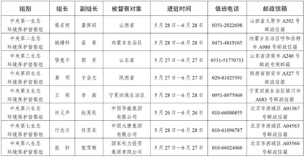 新华社北京5月28日电(记者高敬)记者28日从生态环境部获悉,到当日下午,第三轮第四批8个中央生态环境保护督察组全部实现督察进驻,将分别对山西、内蒙古、山东、陕西、宁夏5省(区)开展督察,统筹开展黄河流域督察和省域督察,同时对中国华能集团有限公司、中国大唐集团有限公司、国家电力投资集团有限公司3家中央企业开展督察。 督察组指出,要统筹开展流域督察和省域督察,推动黄河流域生态保护和高质量发展取得新进展,督促中央企业建立健全生态环境保护管理制度和责任体系,在推动高质量发展上走在前、作表率,促进经济社会发展绿色低碳转型,推动生态环境质量明显改善、美丽中国建设取得显著成效。 5省(区)和3家中央企业主要负责同志表示,要全力做好督察配合工作,按照中央生态环境保护督察进驻工作安排,做好情况介绍、资料提供、协调保障、督察整改、信息公开等各项工作,确保督察工作顺利推进,取得实实在在的效果。