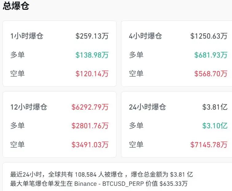 最近24小时,全球共有超10.8万人爆仓。