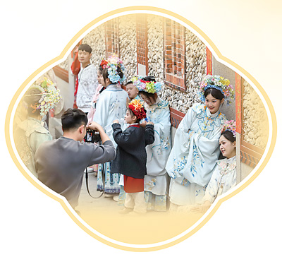 游客在福建泉州丰泽区蟳埔村簪花拍照。 王志超摄